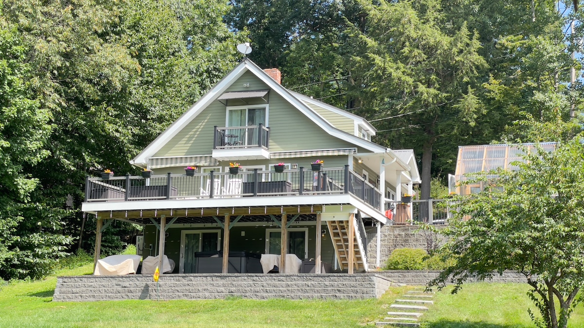 Escape to a peaceful, lakeside retreat with a secluded sun-lit deck and private dock with incredible views of Sunrise Lake, plus a 4-person hot tub, and seasonal amenities like a pedal boat, two kayaks, a SUP board, gas fire table, central A/C, a pellet stove, and snowshoes. Enjoy nearby activities like hiking, leaf peeping, skiing, and visiting scenic towns, local vineyards and breweries — or simply relaxing in a beautiful lakefront setting. The sunsets can be unbelievable!