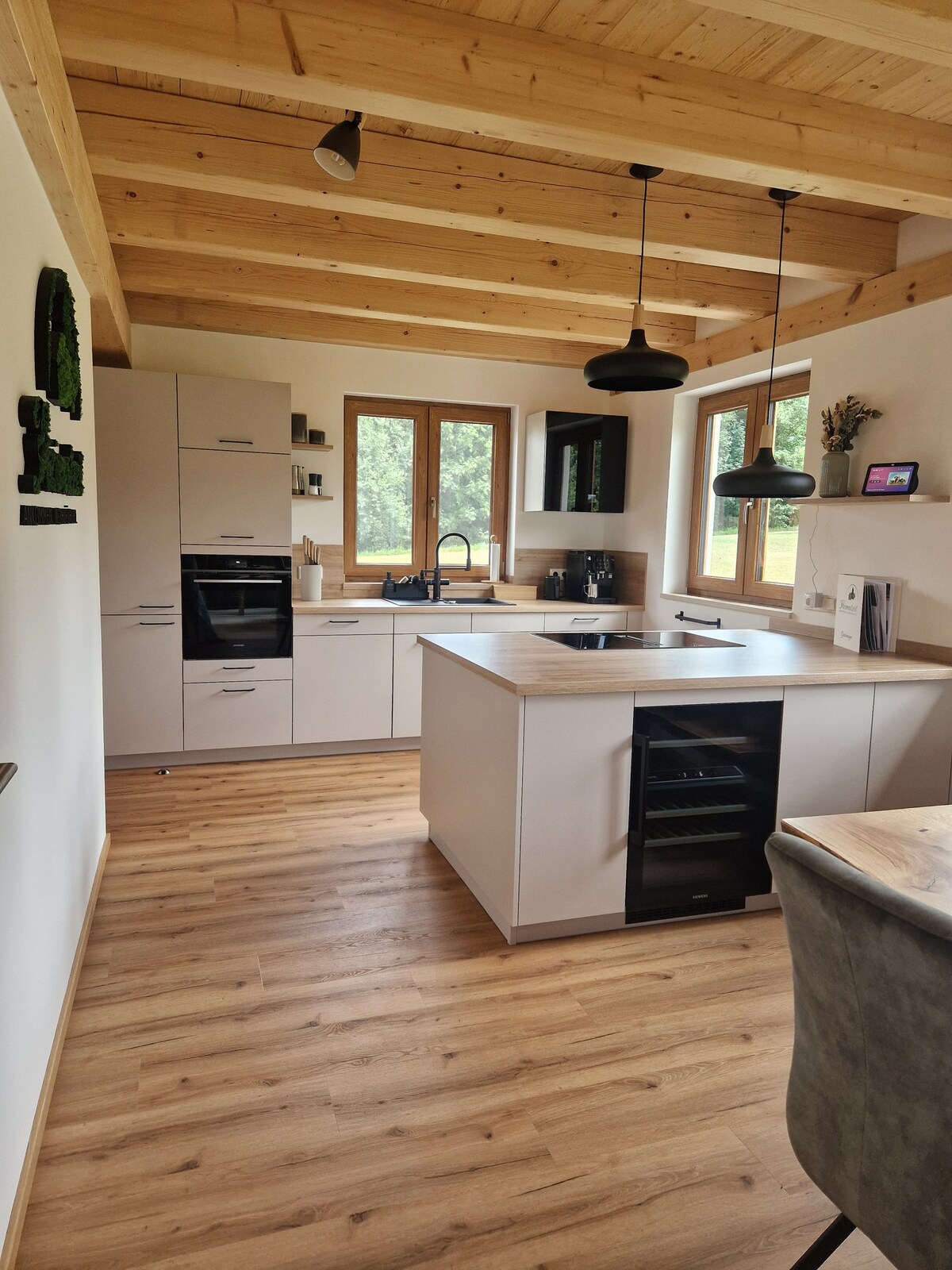 Stylish restored old barn in a stunning secluded location, offering 120 sqm of space with panoramic views of the countryside, a 50 sqm gallery with large windows, an infrared cabin, a walk-in shower, a bathtub, a luxury designer kitchen, terrazzo marble flooring with electric underfloor heating, a historic tiled stove from 1700 and a fenced garden for as many dogs as you like. A dream just 15 min. from Passau, 3 min. from the motorway, and 10 min. from the Danube. Bookable from Nov 2025