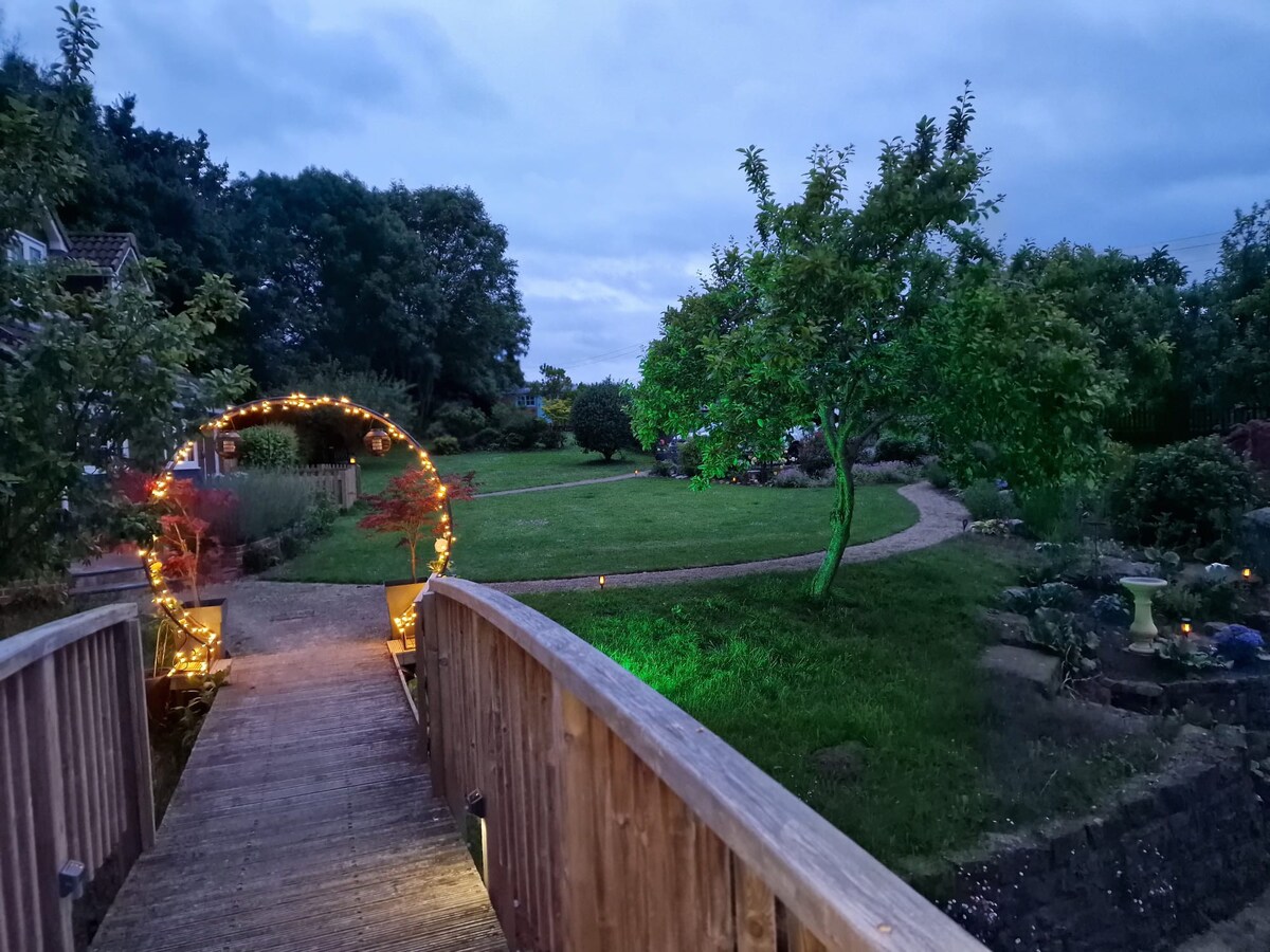 Yeni müasir üslublu mükəmməl daxma. Jakuzini əhatə edən Louvre Pergola, yağışdan ideal qorunma/günəşdən zövq alın. (Cakuzi = hər qonaqlama üçün əlavə 30 funt-sterlinq). Rustik Oyunlar Otağımız + Salonumuz (hovuz, dart + lövhə oyunları) istirahət üçün mükəmməldir. Bağda axın. 2 açıq verandadan zövq alın, milyonlarla ulduzun parıltısını seyr edin. Parklanma + EV Şarj Cihazı. Mükafat qazanan paba 5 dəqiqəlik piyada məsafədə. AONB-nin kənarında: Din Meşəsi, Uay Vadisi və canlı tarixi Qloster Şəhəri. Kotsvolds və Ross-on-Uay yaxınlıqdadır.