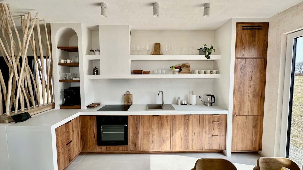 Özünüzü xarakterə malik bir məkanla – rahatlıq, səssizlik və yalnız sizin üçün bir mənzərə ilə mükafatlandırın. Vinn Tarası kottecləri üzüm bağı və üzüm tənəklərinə baxan təpədə yerləşir. Hər biri dörd nəfərə qədər qonaq yerləşdirmək üçün uyğunlaşdırılıb, cütlüklər üçün mükəmməldir. Onlar tam təchiz olunmuş və mebellə təmin edilmiş, kondisioner, döşəməaltı istilik və Wi-Fi ilə təmin olunmuşdur. Bu unikal və sakit gəzinti yerində rahatlayın. Domek Muscat-da 2 nəfərlik odunla qızdırılan cakuzisi var.