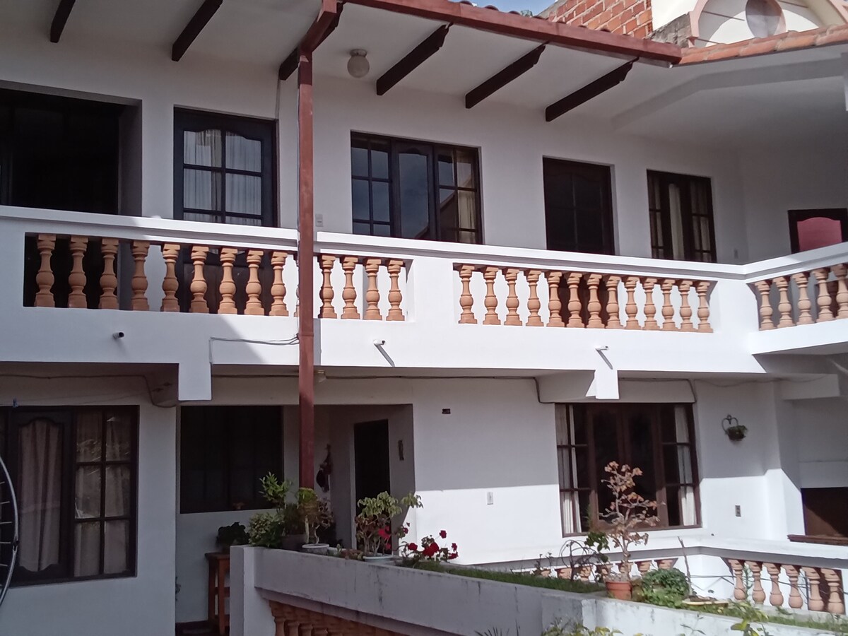 Gözəl verandalı, istirahət və istirahət üçün ideal rahat ev süitası otağı. Əla mövqe: əsas meydandan 5 blok və mərkəzi bazardan 3 blok və Sucre-nin əsas görməli yerləri, təhlükəsiz və sakit sahə, bir neçə addım məsafədə camaşırxana. Dəsmal və saç feni ilə ləkəsiz təmizlik. Mikrodalğalı soba peçi, çaydan və qəhvə süfrələri, çay və ya sadə bir şey. Evdə daha 3 otaq var, odur ki, digər səyahət dostlarını uyğunlaşdırmaq mümkündür.