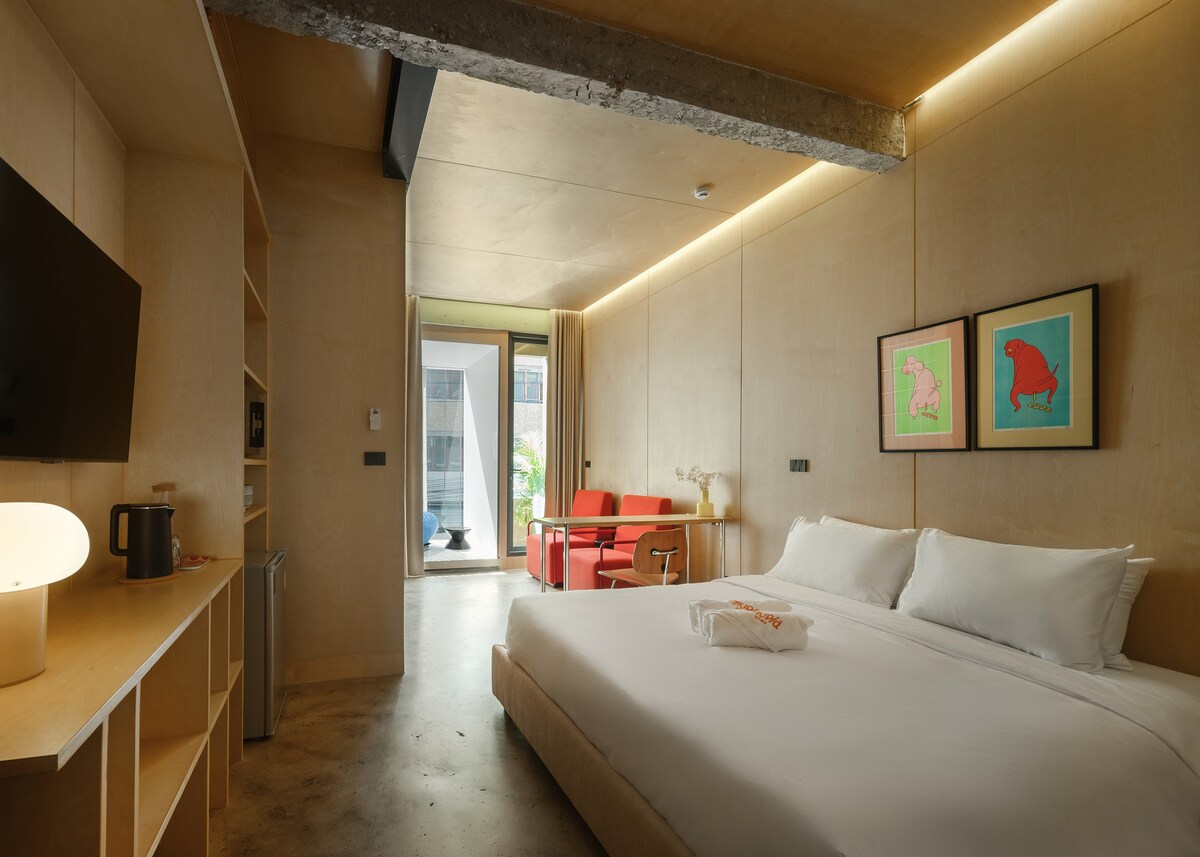 İçəri Şəhər Banqkokda böyük vannası olan bu müasir dizayn otağında qonaqlamaq müasir rahatlıq və mədəni zənginliyin mükəmməl balansı olan dəbdəbəli istirahət təklif edir. Parlaq dizayn, yüksək səviyyəli imkanlar və əsas mövqenin birləşməsi həm istirahət, həm də Banqkokun tarixi cazibədarlığının orijinal təcrübəsini axtaran səyahətçilər üçün ideal seçimdir. Mərkəzdə yerləşən bu yerdə dəbli təcrübədən zövq alın.