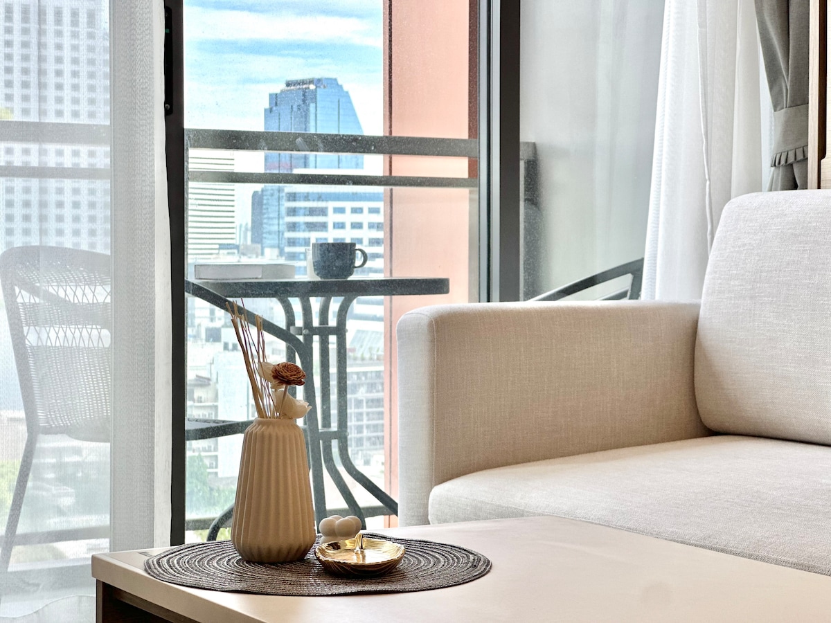 Edge Sukhumvit 23-ün 27-ci mərtəbəsindəki rahat yüksək mərtəbəli mənzilimizə xoş gəlmisiniz. Bu, BTS Asok və MRT Sukhumvit-dən sadəcə addımlardır. Qonaq otağı tam hündürlüklü pəncərələri ilə işıqlıdır, loft üslublu yataq otağı isə sizə həm üstdə yataq yeri, həm də əlavə çarpayısı olan alt-üst iş sahəsi verir. Hər şeydən əvvəl, hovuz və idman zalı eyni mərtəbədədir və qonaqlamanız zamanı rahatlamağı və aktiv qalmağı asanlaşdırır.