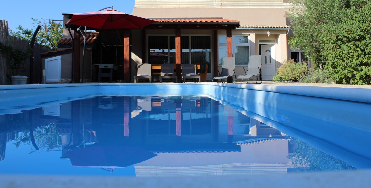 Zadarda müasir və geniş mənzil (təxminən 120 m2) . Şəxsi hovuzunuzla ( ölçüsü 8x4 m. ) barbekü, 3 parkinq yeri və şəxsi girişiniz olan böyük bağ ilə özünüz üçün evin tam birinci mərtəbəsi olacaq. Qonaqlama daha çox tətil evinə bənzəyir, çünki evdə icarəyə verilən yeganə mənzildir. Ən yaxın mağaza, qəhvə barı və bazar 200 m məsafədədir. Çimərliklər, muzey və köhnə şəhər mənzildən təxminən 2,5 km uzaqlıqdadır.