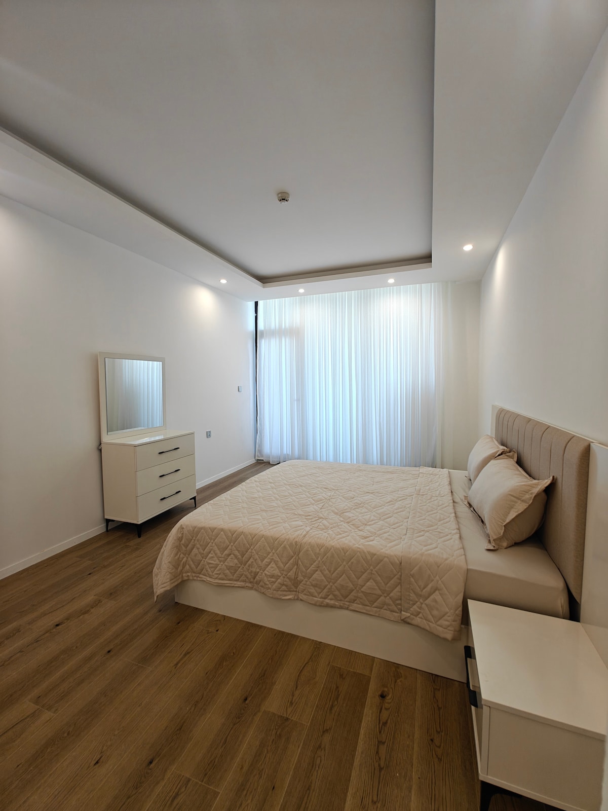 Enjoy stunning city views from the 15th floor in this spacious 118m² apartment. With a cozy living room and a fully equipped kitchen,it’s the perfect place to relax after exploring the city. Taxis are always available right in front of the building, and the apartment is just 5 minutes from 60m Road for easy access to shopping, dining,and entertainment. You can even call the market inside the German Village to have groceries delivered straight to your door. minimum staying one week for this price