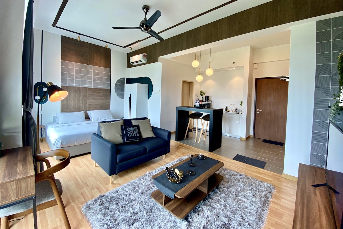 Bu, məşhur dizaynerin Kuala-Lumpur dizaynında toplaşmaq və qısa qonaqlama məqsədləri üçün uyğun olan loft studiya bölməsidir. Ümid edirik ki, qonağımızın məkanda gözəl və yaddaqalan bir gün keçirməsinə icazə vermək üçün yaxşı dizayn edilmiş məkan yaradacağıq. Yaşayış yerinə görə çox əlverişli bir yer var ki, bu da restoran və mağazanın çeşidlərini təmin edən ticarət mərkəzi ilə əlaqələndirilib.