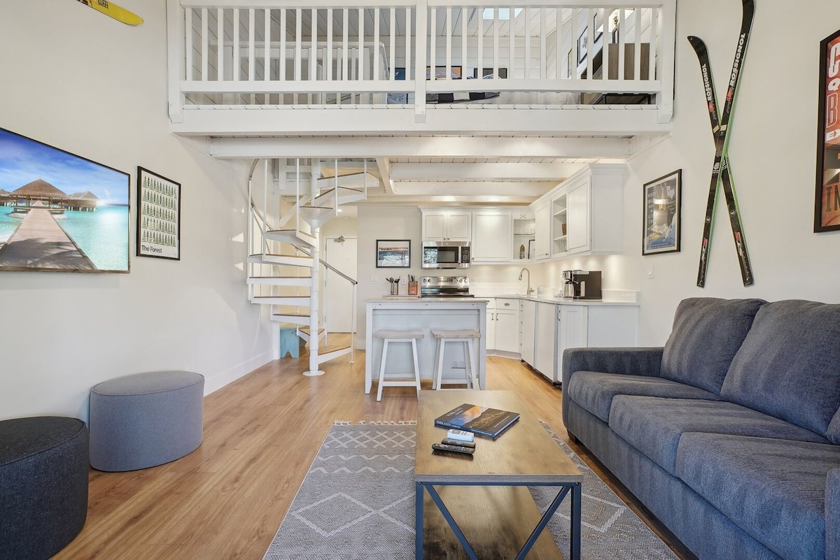 Vaulted, yuxarı səviyyəli 360 sf studiyası. Xizək kurortları və Əsas Küç. 5 dəq məsafədə (təxminən 1,5 mil məsafədə). PULSUZ avtobus sizi kurortlara/alış-verişə aparır. Yenidən qurulmuş və gözəl! 50" Smart TV, taxta döşəmələr, qaz buxarı, kiçik qalley mətbəxi, kral çarpayısı (2 yatır) və queen ölçülü divan şkafı gel yaddaşlı köpük döşəyi (1 yatır). Cakuzi il boyu açıqdır. Yay aylarında hovuz. Gəzinti məsafəsində restoranlar. Bir uçuş pilləkənlə qalxmalı olacaqsınız. İstəyirəm ki, studiyam özünüzü evinizdən uzaqda hiss etsin!