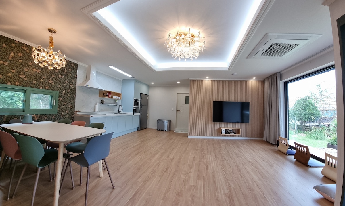 Kəndin ab-havasını hiss edə biləcəyiniz kiçik bir ev olan Gwangyang Monguljae-də sakit bir kənd məhəlləsində gəzinti ilə qarşılaşa bilərsiniz. Monguljae 2021-ci ildə valideynlərim tərəfindən hinterlandda yerləşən kvadrat əyri torpaqdan tikilmiş bir ev idi. 1 mart 2024-cü ildə ilk dəfə Airbnb kimi hazırladığım vaxtdan Sarangchae kimi nəzərdə tutduğum əlavəni açdım. Eyni zamanda ⭐️təbiət qoynunda yerləşən ölkə evinin hissiyyatından zövq alaraq xoş qonaqlama rahatlığından zövq almaq istəyənlər üçün tövsiyə edilir.⭐️ 1 dekabr 2025-ci ildə terras və döşəmə yenilənərək daha sevimli bir Monguljae-ya çevrildi. Meşədəki kabinədən kiçik bir qaşıq əlavə edildi🍂 Bütün terrası və göyərtəni barbekyu məkanı üçün hazırlamışıq. Burada külək və yağışın təsirini minimuma endirərək açıq havadan zövq ala bilərsiniz. 3 həftəlik tikintidən sonra təmizlənən həyət də bir məqamdır! Əsas bina ilə ayrıca bina arasında divar tikildi və daha müstəqil bir məkan kimi yenidən doğuldu.☺️