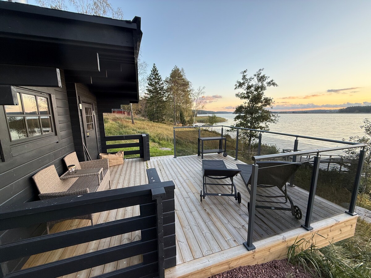 Kottec suyun yanındadır və qərb istiqamətində mövqeyi olan gözəl göl mənzərəsi var. Yay günlərindən zövq ala biləcəyiniz ayrıca terras var. Çimərlikdə üzgüçülük nərdivanı olan üzən jetti var. İcarəçilərin sərbəst istifadə edə biləcəyi bir qayıq da var. Teras və şezlonqları olan öz odun sobalı çimərlik saunanız. Qonaqlamaya yataq dəsti, eləcə də dəsmallar daxildir. Kabinədə dart taxtası, kroket və kub oyunları mövcuddur. Ərazidə icarə üçün təchizat lövhələri mövcuddur.