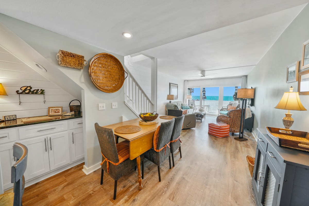 Escape to a newly renovated, slice of paradise in quiet Sunnyside. - Beachfront views - One Beach Chair Set Up (2 Chairs + Umbrella) Provided April - September (no guarantee for last minute bookings) + 4 folding chairs - townhome with 3 bedrooms - 2 King & 2 Queen beds - 2 full bathrooms & 1 half bathroom - TV’s in bedrooms & living room - Fully stocked kitchen essentials - Dining table for 8 - Screened-in porch viewing the beach - Patio with sun chairs & grill - Starter amenities