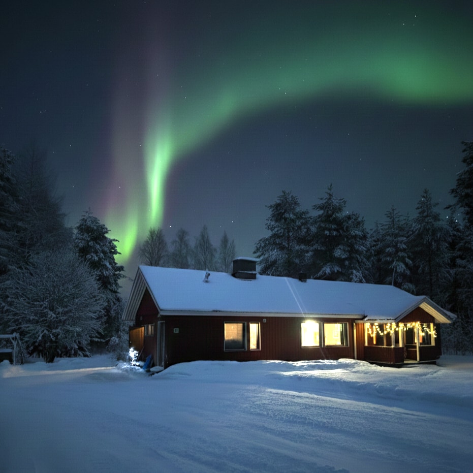 Səhrada yerləşən gölün məxfiliyində tam təchiz olunmuş villa. Bu ərazidə Finlandiyada ən çox qar yağıb. 2022-ci ildə tamamlanıb, tualet, yeraltı istilik sistemi, kondisioner, qabyuyan maşın, paltaryuyan maşın, mikrodalğalı soba, duş, Wi-Fi. Şimal İşıqları bizdə tez-tez görülür və mənzərə pəncərələrindən izlənilə bilər. Unikal və sakit. Burada mətbəxin içində təmiz bulaq suyu içə bilərsiniz. Hava limanına kirayə avtomobil təmin edirik: Kuusamo Rovaniemi Oulu Rovaniemi şəhərindəki Santa Klaus Qraflığına bir günlük səfər etmək çox asandır! Terv