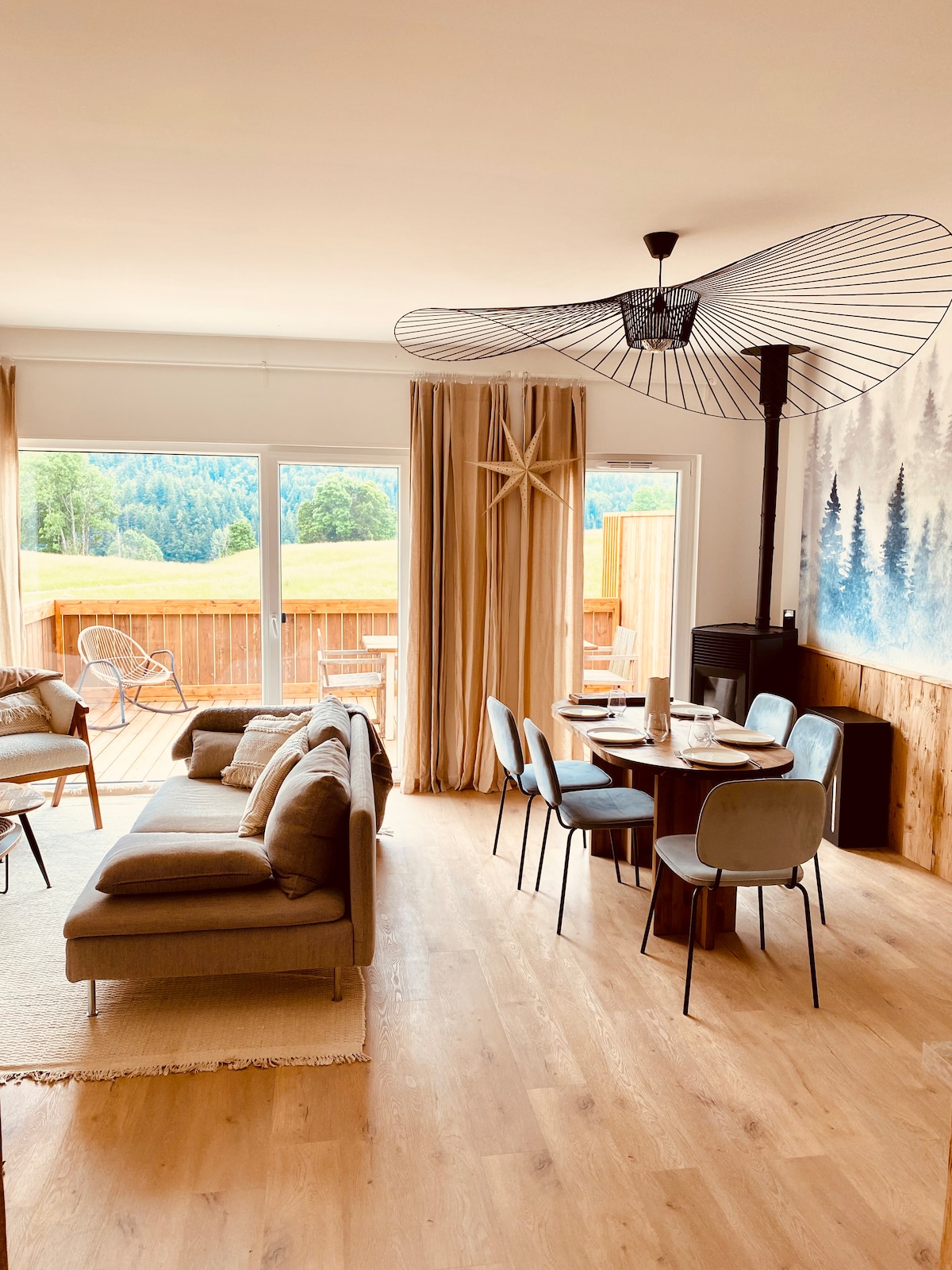 Payız yaxınlaşır! Gəlin və Yuranın gözəl rənglərindən zövq alın. Qazinin evi Joux meşəsinin yaxınlığındakı kənddə yerləşən 150 kvadratmetrlik kottecdir. Bir gün dağda velosiped sürdükdən və ya yürüyüş etdikdən sonra Yura dağlarına baxan terrasda dincəlməlidir. Sərin bir axşamda sobanın yanındakı divan sizi qarşılayacaq, uşaqlar isə ikinci mərtəbədə oynaya bilər. Hər şey sizə yaxşı yeməklər bişirmək üçün planlaşdırılıb.