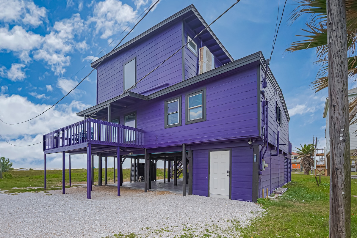 YENİ Çimərlikdə Tikinti! Həqiqətən Unicorn:🦄 MÖVQE, LÜKS və YENİ olmaq üçün çox gözəl! Sörfdə ən yaxşı restoran və çimərlikdən uzaqda yerləşir. Evin altındakı qamaklardan və oyunlardan zövq alın. San Luis Pass-dan Cettiyə qədər mənzərələri olan möhtəşəm kölgəli göyərtəyə doğru addımlarla qalxın! 180 dərəcədən çox maneəsiz baxış. Yataq otaqları SunDeck-ə açılır və video üçün yanğın 🔥 çuxuru YouTube Beachfront Luxe ilə ulduzları seyr edir $ 125 təmizlik haqqı və bütöv qonaqlama üçün maksimum 2 ev heyvanı üçün cəmi 75 $!