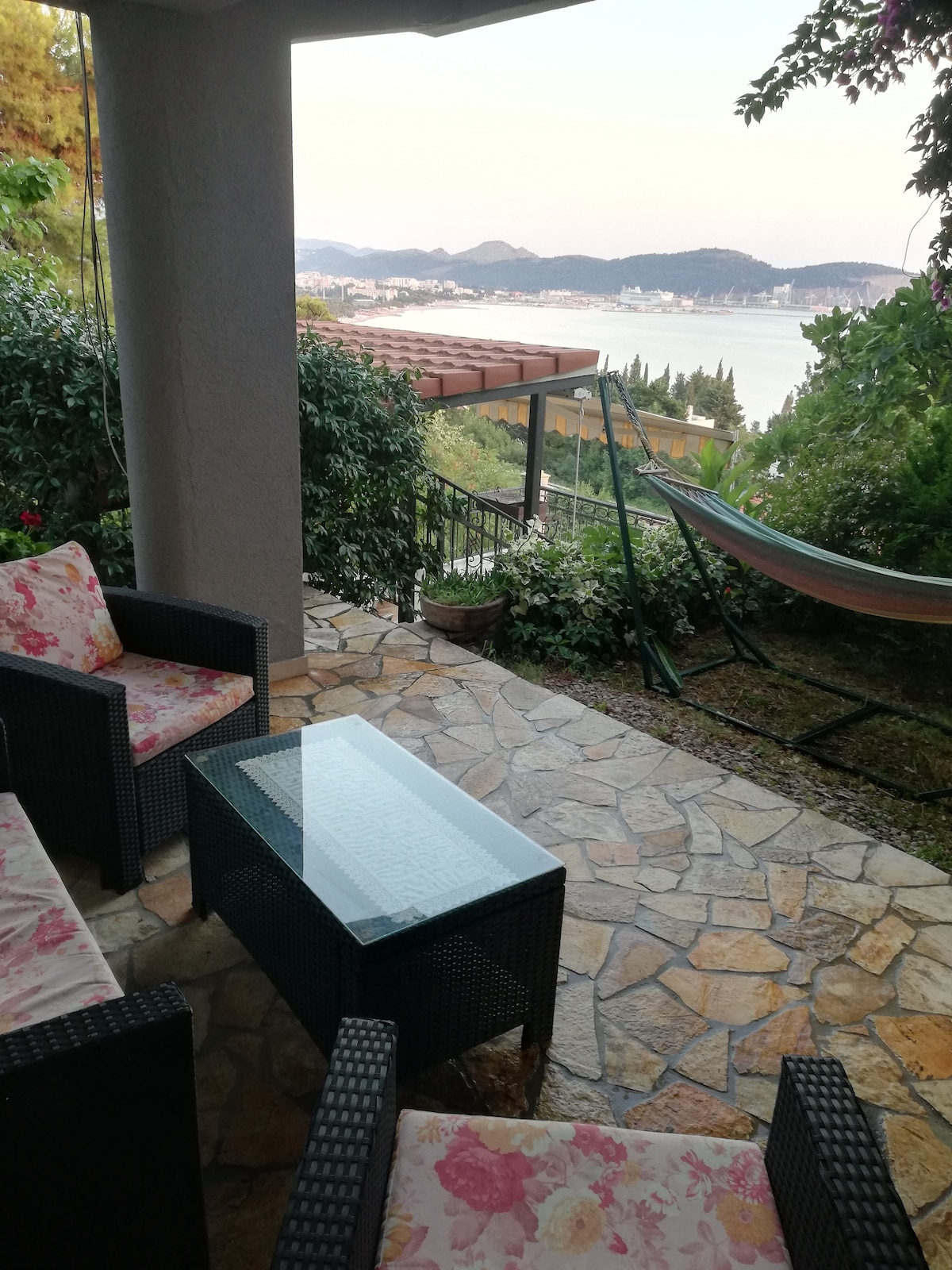Təpədə sakit yaşıl məhəllədə yerləşən, terras və dəniz mənzərəli geniş mənzil. Avtomobillə əlaqə saxlamaq asandır, pulsuz parkinq mövcuddur. İçəridə: iki yataq otağı, mətbəx, duş, paltaryuyan maşın, kondisioner və Wi-Fi. Çimərliyə avtomobillə 5–7 dəqiqə uzaqlıqdadır, gəzinti də mümkündür. Sülhə və gözəl mənzərəyə dəyər verən ailə və ya dostlar üçün mükəmməldir.