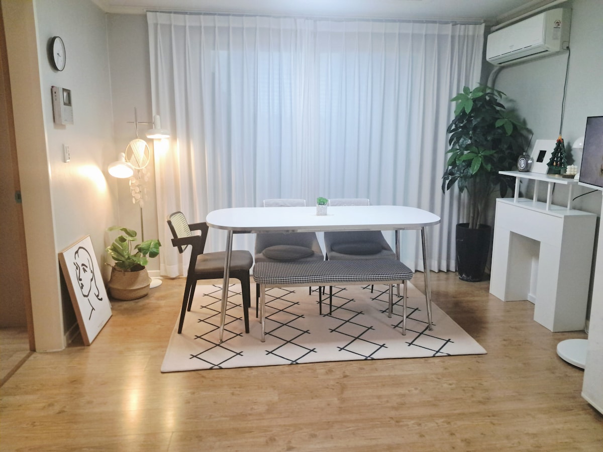 ❤️Onu oxuyun və istifadə edin.❤️ 📌Ev heyvanlarına icazə verilmir! Cərimədən sonra məcburi çıxarılma! 📌Saat 12:00 -da gec çıxış tədbiri həyata keçiririk:) Öncədən rəy tədbiri üçün müraciət etməlisiniz. Yola düşmə günü rəy yazmaq məcburidir:) Qonaqlama yerindən 30 saniyəlik məsafədə pulsuz 📌parkinq mövcuddur. Odur ki, bizə əvvəlcədən məlumat verin. Parkinq təlimatları ilə bağlı sizə kömək edəcəyik. - Bu yaxınlarda Daegu-da ən isti yer olan Jungang-ro super stansiyası sahəsi, Dongseong-ro və Gyo-dong-a yaxındır. - Hər gün dəyişərək və karantin tətbiq edərək yataq dəstini təmiz saxlayırıq ki, arxayınlıqla bron edə biləsiniz:) - Netflex, Disney Plus, TV, Coupang Play-dən pulsuz istifadə edə bilərsiniz. - Rahat istirahət edə bilməyiniz üçün onu təmiz və səliqəli saxlayırıq.