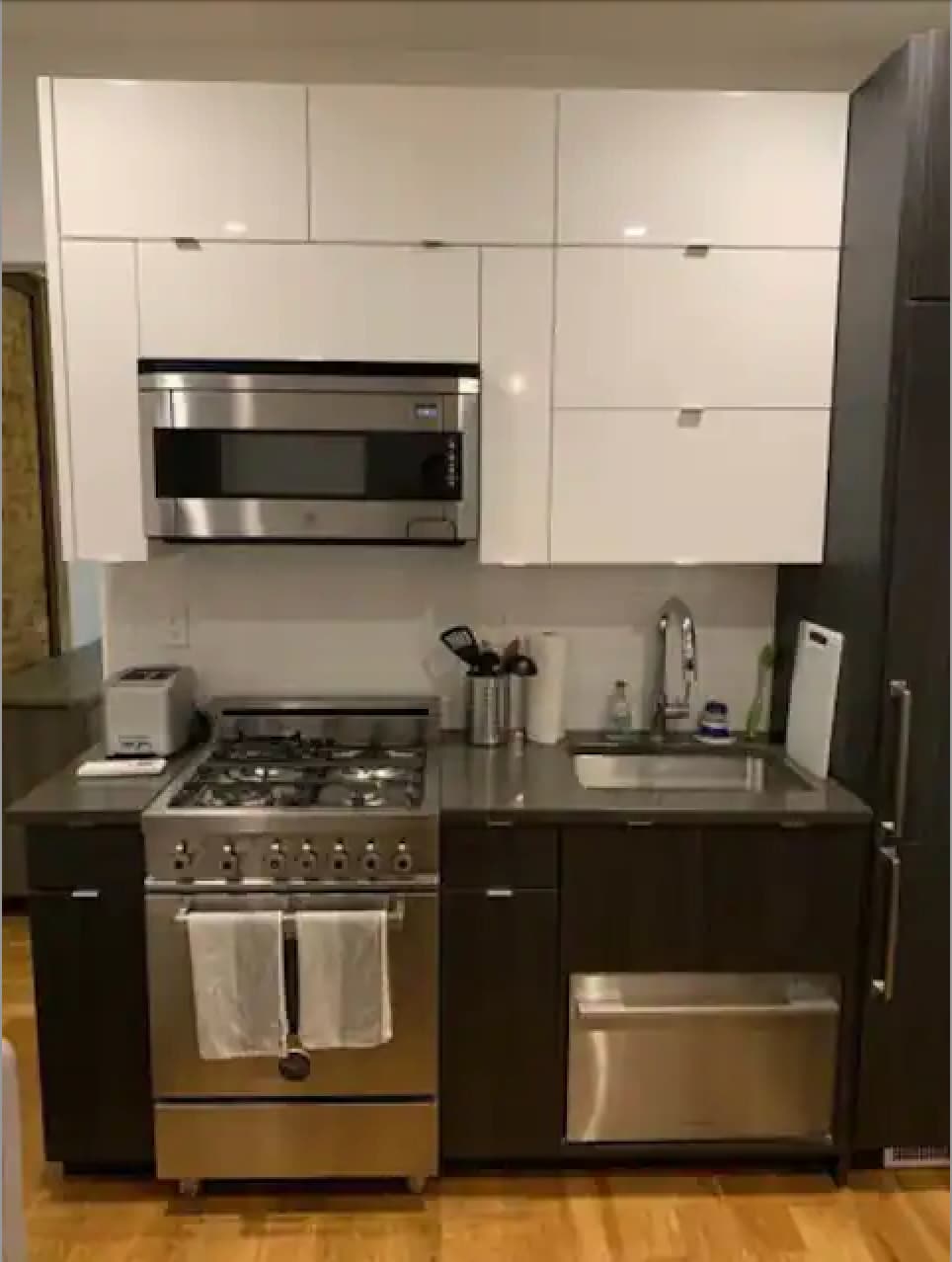 Enjoy the glamour of this stylish, upscale place. One bedroom apartment with all rooms including the living room having windows. Wide plank oak floors and amazing custom lighting. Kitchens with quartz countertops, built-in oven and convection microwaves, Liebherr refrigerator, L/G Washer and Dryer, AC units. Located close to St. Marks, Tompkins Square Park, and the best restaurants, bars, cafes, music venues, coffee shops, art galleries, boutiques and thrift shops in NYC. Subway five min walk.