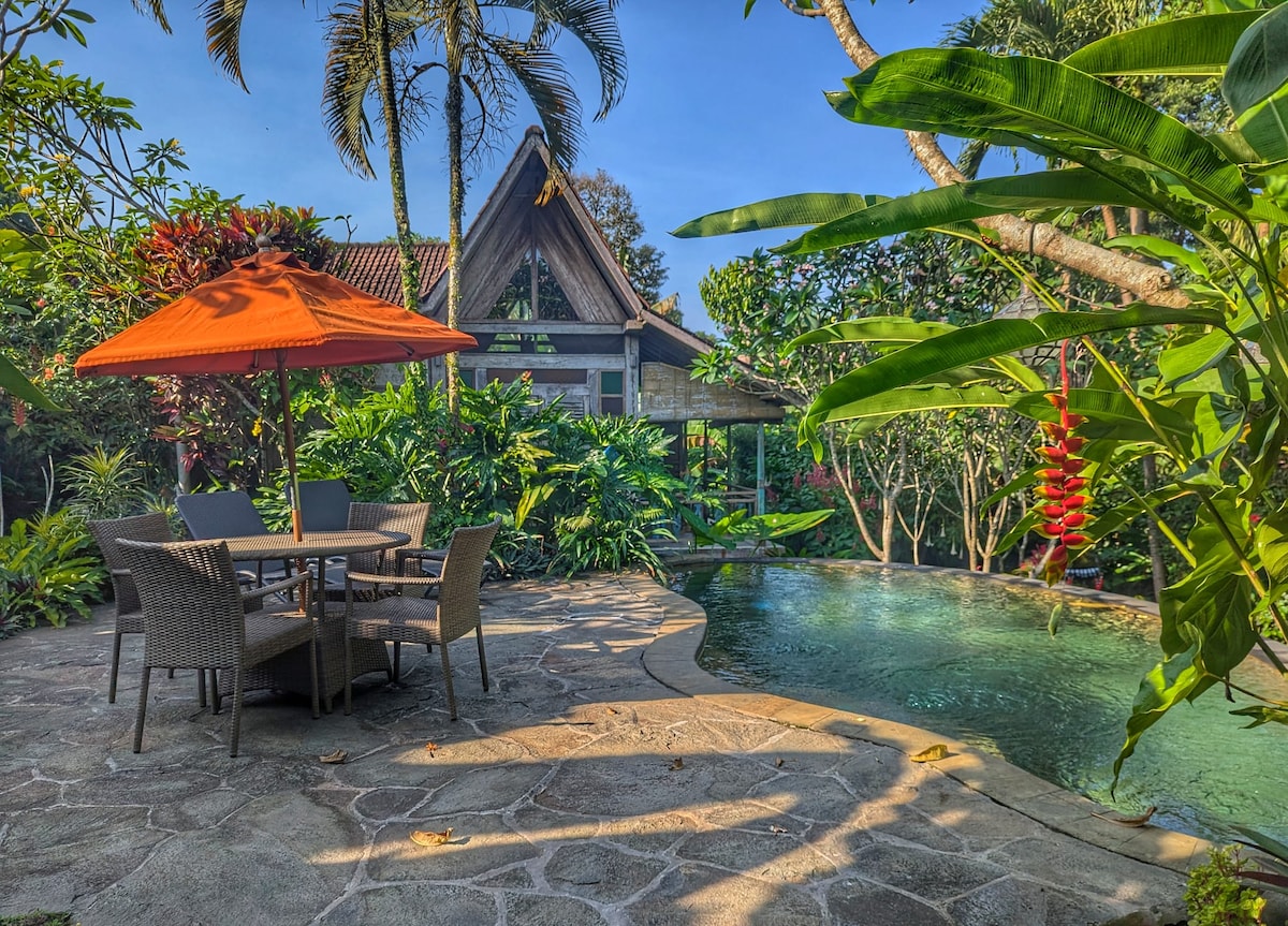 Cəngəllik və düyü terras mənzərəsi ilə təbiətdə qalmaq istəyən birlikdə səyahət edən iki və ya iki dost üçün mükəmməldir. Bizimlə qalmaq o deməkdir ki, Bali həyat tərzimizə qoşulmaq üçün əla fürsət əldə edəcəksiniz. Fermamızda bizə qoşula və yerli kənd mərasimimizə qoşula bilərsiniz. Ev özü unikal üzüm xüsusiyyəti olan köhnə təkrar emal edilmiş ağacdan istifadə edərək tikir. Ayrıca sonsuzluq hovuzu və mətbəx ilə də tamamlanıb. Səhər yeməyi daxildir. Digər yemək əlavə xərclə təmin edilə bilər.