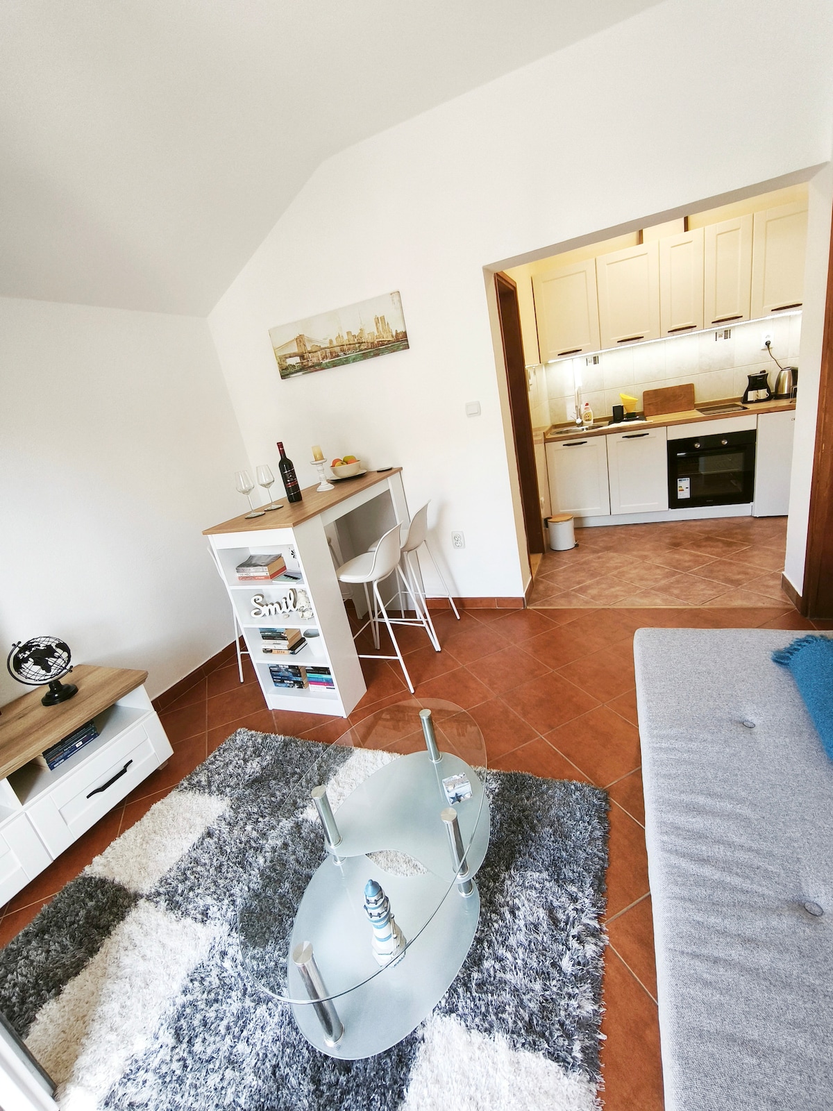 Dənizkənarı studiya 3 nəfərə qədər şəxsin öz şərtləri ilə yatmaq və səhər yeməyi yemək üçün rahat bir yer kimi idealdır. Bu yaxşı istifadə edilmiş 22 m2 bir uşaqla bir cütlük və ya Monteneqronu araşdırmaq istəyən üç gənc dost üçün idealdır. Tam funksional studiya tam təmirdən sonra 2022-ci ilin iyun ayında bazara gəldi. Kiçik ərzaq mağazasının, bərənin, iki avtobus dayanacağının və üç çınqıllı çimərliyin yaxınlığı buranı əla yuxu məkanına çevirir. Turist kimi turist vergisini ödəməlisiniz