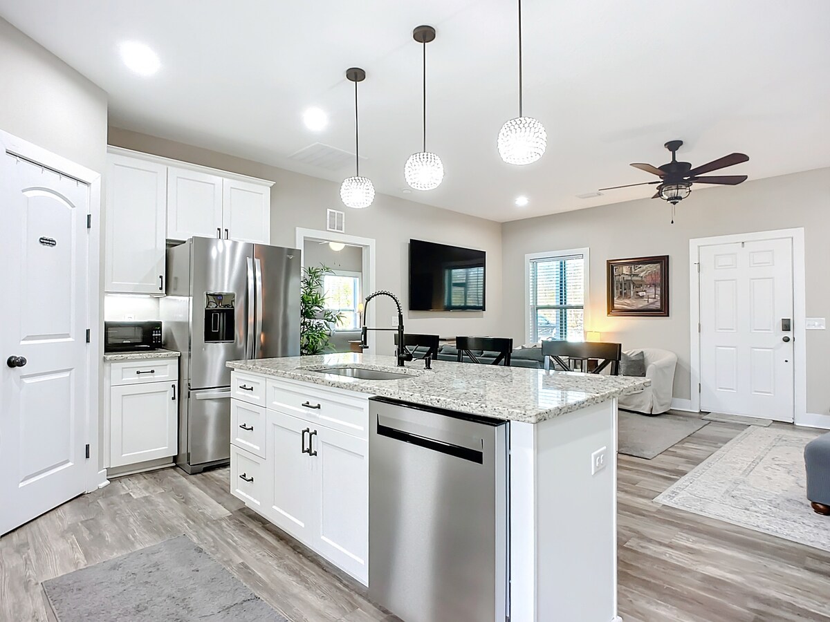 Ayrıca bir avtomobil qarajı və rezervasiya edilmiş parkinqi olan bu dəbli, təmir edilmiş Gainesville kondominiumunda qonaqlayın. Mərkəzdə yerləşən restoranlar, qəhvə mağazaları, desert yerləri, alış-veriş və kinoteatrın bir addımlığındasınız. UF tədbirləri, Qators futbolu, məzuniyyətlər və ya Shands/UF Health səfərləri üçün mükəmməl olan bu müasir, rahat istirahət məkanı Midtown Gainesville və şəhər mərkəzindəki turistik yerlərə asan girişi olan rahat, əngəlsiz qonaqlama üçün ehtiyacınız olan hər şeyi təklif edir.