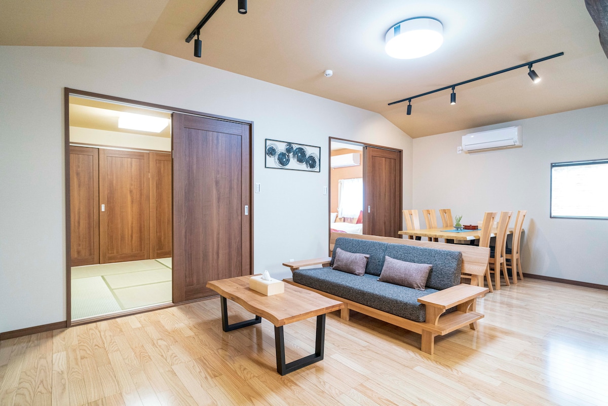 Hanaike Retreat-ə xoş gəlmisiniz! Avtomobillə səyahət edənlər üçün cəlbedici və rahat yer yaratdıq. Ghibli Parkı və Naqoya Qalası, Legoland maşınla təxminən 30-40 dəqiqədir. Yapon ənənəsini Skandinaviya mürəkkəbliyi ilə birləşdirən Japandi-design səfəriniz üçün qeyri-adi hisslər yaradır. Gözəl Yapon bağına baxarkən dincəlin. Ailələr və qrup səfərləri, eləcə də tarixsevərlər üçün tövsiyə edilir. Sizi Aiçinin cazibədarlığını yenidən kəşf etmək üçün səyahətə dəvət edirik.
