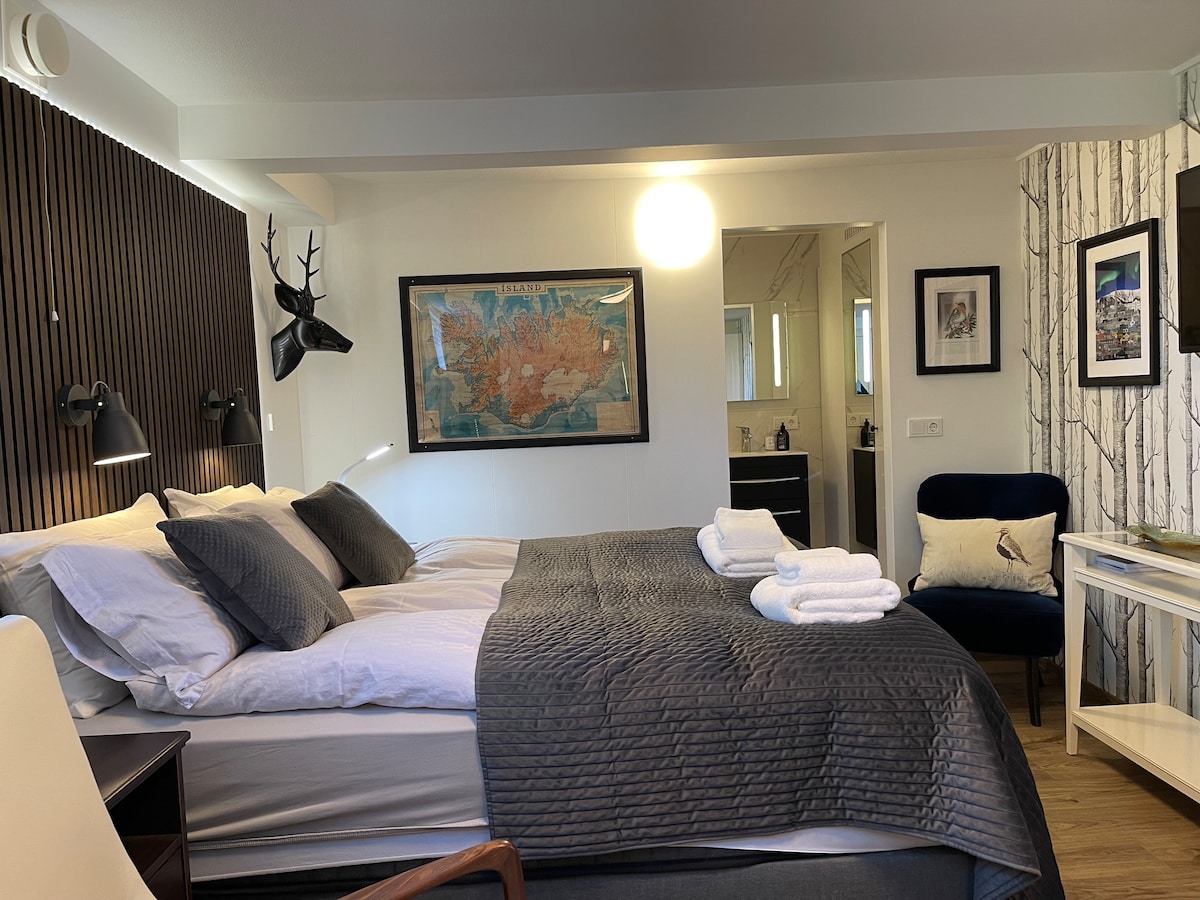 360 aurora mənzərəsi olan dəbdəbəli evimiz Reykyavikin kənarında incə təbiət parkında yerləşir. Yaxşı təchiz olunmuş mətbəx, zərif mebel, gözəl vanna otağı və rahat yeni çarpayılar, bir kral və bir kraliça var. Üçüncü otaq/ofis tək çarpayı və gözəl gün batımı mənzərələri ilə açıqdır. Əmlakın ətrafında təbiət parkına, çoxlu gəzinti yerlərinə, romantik gölə və yaxınlıqdakı yeni vulkana və Mavi Laquna möhtəşəm mənzərələr təklif edən gözəl lava bağçası var.