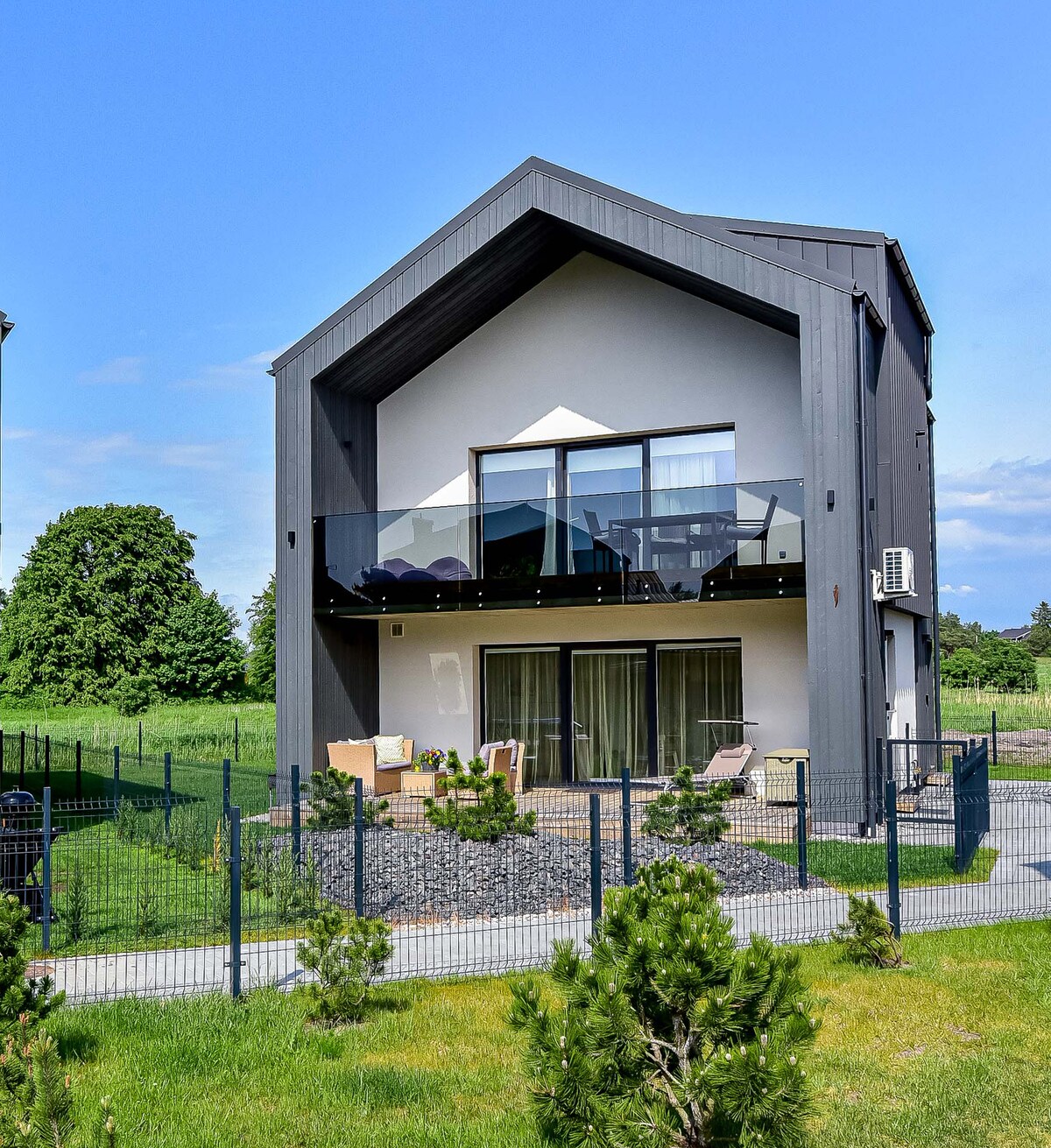 Dənizə yaxın xüsusi arxa həyəti olan yeni müasir kottec (ayaqla 10 dəq). Burada ailəniz və ya dostlarınızın tətilləri və ya iş yerləri üçün lazım olan hər şeyi tapa bilərsiniz. Məkan ~42 m2 Birinci mərtəbə - qonaq otağı, mətbəx və hamam otağı. İkinci mərtəbə - iki nəfərlik çarpayısı olan iki yataq otağı. Yataq otaqlarından birində xüsusi iş yeri var. Rahat qonaqlama üçün: Wi-Fi interneti, televizor, mikrodalğalı soba, soyuducu , paltaryuyan maşın, quruducu, mətbəx ləvazimatları, yataq dəsti və dəsmallar. Ayrıca parkinq. Terras. Dəniz kənarında həyatdan zövq alın!