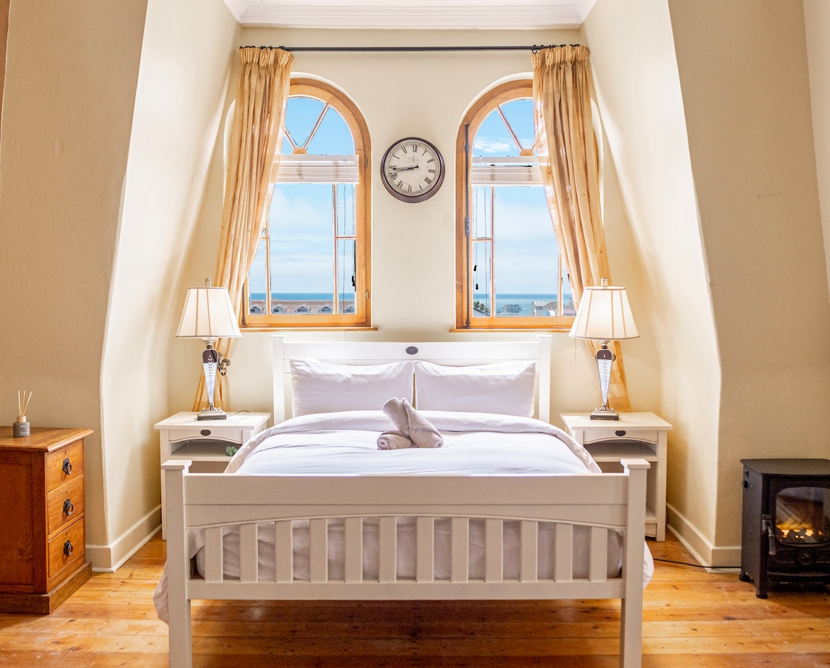 Step into a rare piece of Swakopmund’s living history. This one of a kind penthouse is set within one of the town’s most iconic & historic buildings. This character-filled two-bedroom apartment sleeps four and overlooks the historic town featuring beautiful sea views. Thoughtfully designed with an old-world, adventurous feel and luxe touches throughout. Centrally located and within walking distance of the beach, cafés, shops and restaurants.