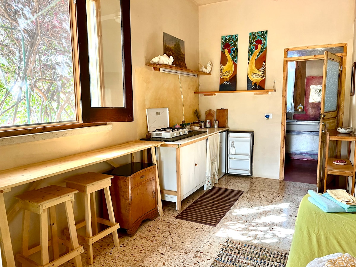 La stanza totalmente indipendente provvista di bagno privato e angolo cottura, situata tra mandorli e ulivi , contornata da bellissime passeggiate con vista sugli Iblei e a soli 5 km da oasi marine spettacolari. 10 km cava grande del Cassibile.La località è inoltre ubicata al centro delle più belle città d’arte della Sicilia orientale . Etna poco distante . Possibile prenotare cene semplici realizzate con prodotti locali. Possibile uso di argilla e forno per realizzare oggetti in terracotta.
