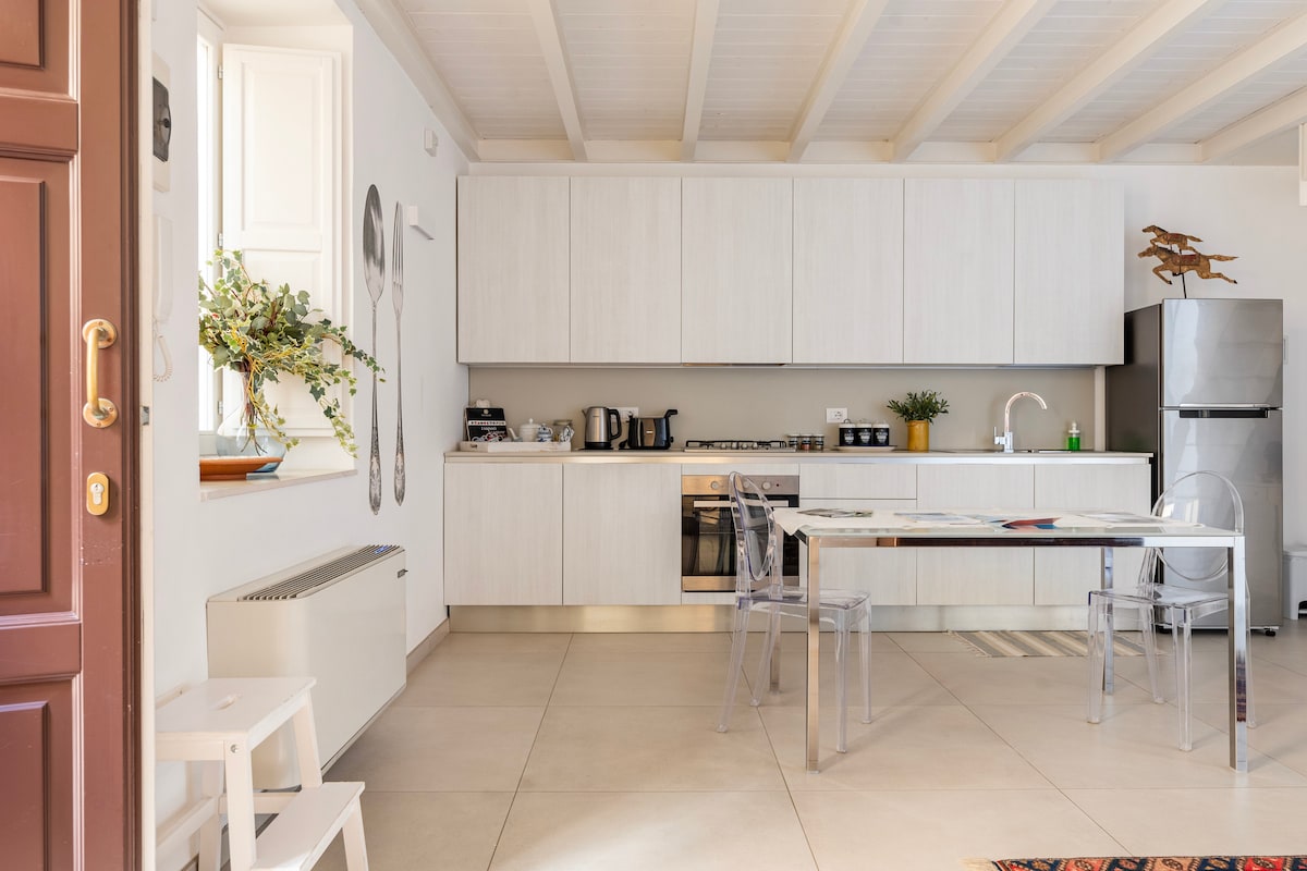 Bu yaxınlarda təmir edilmiş ev Sahildən və tipik açıq hava bazarından qısa məsafədə yerləşir. İkinəfərlik yataq otağında əsas küçəyə baxan, uzun tətil gününün sonunda bir qədəh şərab üçün ideal olan gözəl balkon var. Mətbəx evdə rahat yemək yeməyinizə imkan verir, açılan pəncərədən halqa ilə xoş bir dəniz mənzərəsi açılır. Ortigiyanın bütün görməli yerləri asanlıqla piyada hərəkət edə bilər, çünki Kalarossa çimərliyi