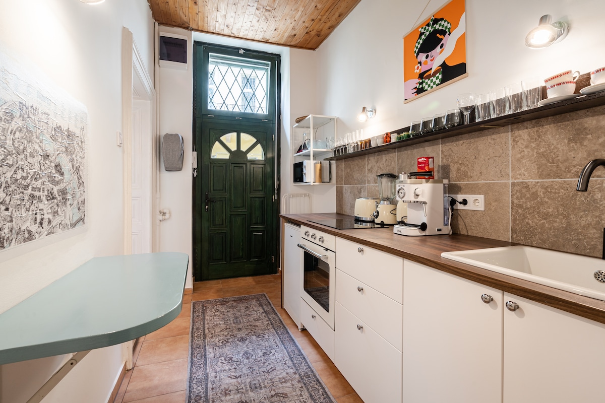 Əgər SİZ: orijinal sığınacaq axtaran pulsuz ruhunuz varsa; vinilləri♥ sevirəm; paytaxtın ortasında AĞACLARIN altında oturmaq♥ istəyirsiniz; KOMFORTLU MASASI və♥ super sürətli WIFI olan EV OFİSİNƏ♥ ehtiyacınız♥ var; təcrübəniz üçün YOQA DÖŞƏYİ lazımdır; AŞPAZLIQ qabiliyyətləri və PALTARYUYAN MAŞINI olan tam təchiz olunmuş EVDƏN zövq almaq♥ istəyirsiniz? DAHA ÇOX axtarmayın, məkanınızı tapdınız! Həyat yoldaşımla bu interyeri öz əlimizlə, yüksəliş adı və orijinal Budapeşt üslubu sevgisi ilə yaratdıq. Əyləncəli ŞƏHƏR CƏNNƏTİMİZƏ xoş gəlmisiniz!