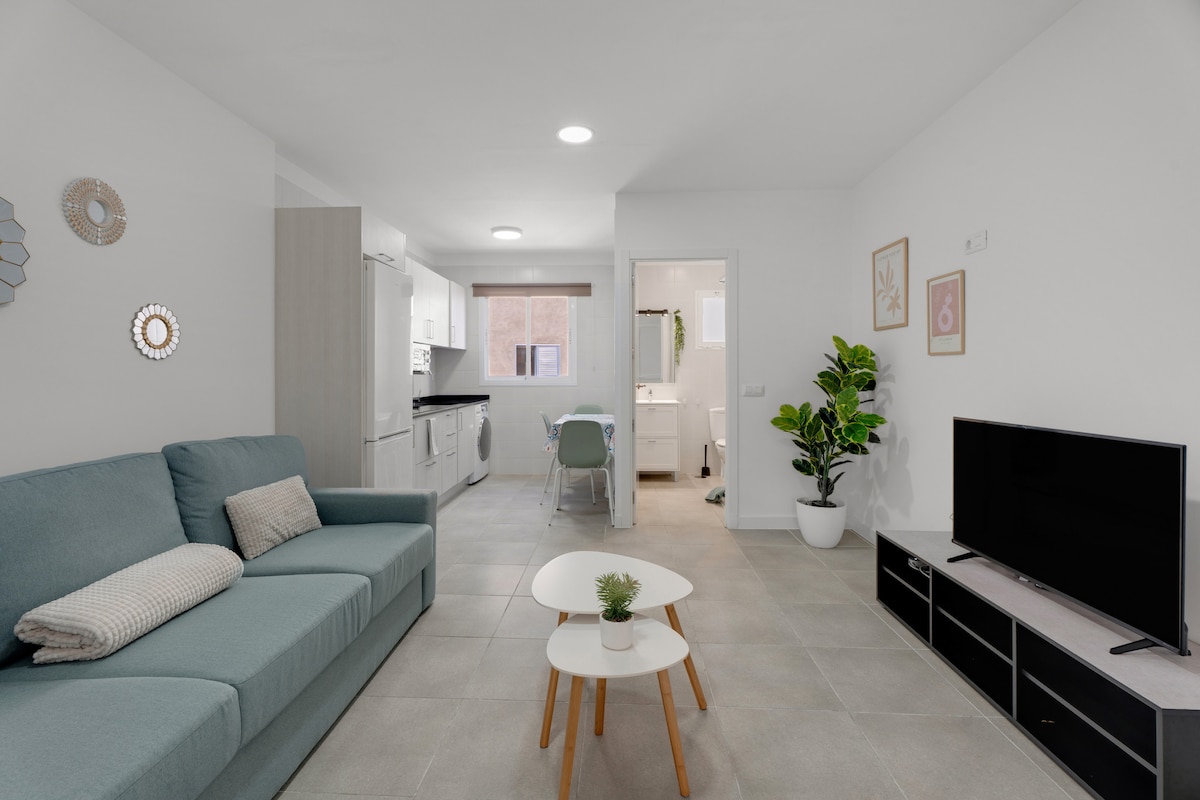 Cozy, brand new, design studio with high quality materials, in the center of Santa Cruz, and equipped with everything you need to enjoy a couple of days in Tenerife. It is located in a quiet area, and it is at a 3-minute walking distance to Mercado Nuestra Señora de África , TEA (Tenerife Espacio de las Artes), Museum MNH, shopping malls, etc. It has a large chill out terrace perfect to have a rest. My lodging is suitable for couples, adventurers, business travelers, and digital nomads.