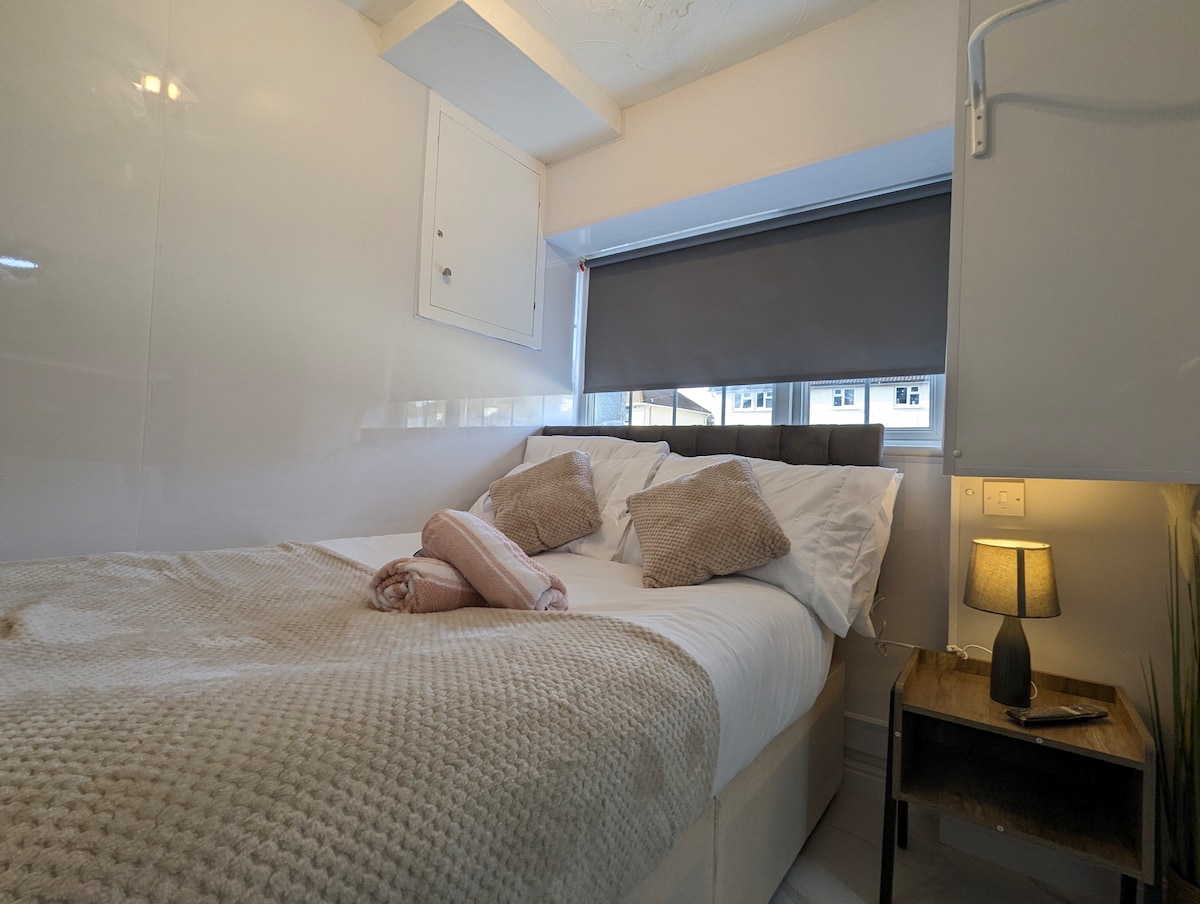Caerphilly Castle ilə üzbəüz. Öz-özünə yığılmış Şəxsi Əlavə, Böyük Otaq, Bağ Mənzərəsi ilə. En Suite Duş + WC, 2 Tək Çarpayı, Yüksək Sürətli WiFi. Yüksək Tavan. Bağ, Portativ Air Con istifadə edin Yeri tapmaq asandır, Küçədə Parkinq, Şəhər Mərkəzi və Supermarket Gəzilə bilən, Ziyarətçilər Mərkəzi, Pablar və Restoranlar. Uber Ride /Çatdırılma, 2 Dəmiryolu Stansiyası və Avtobus Marşrutları. PT üçün Park və İdman Sahəsi, Açıq Havada İdman Zalı,Tennis Kortu, Sakit Sahə . Cardiff üçün qatar 25mins hər 30mins Post Office gəzmək