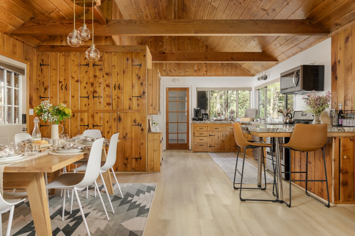 Step back in time at the Lost Sierra Bungalow, a cozy riverside retreat built in the 1960s using reclaimed timbers from 1800s Sierra Valley barns. Nestled where the Yuba River meets Haypress Creek, this peaceful hideaway opens to the sound of rushing water and birdsong. Whether you’re sipping coffee on the deck, cooking a meal with friends, or stargazing under string lights, this cabin invites you to slow down and reconnect with nature.