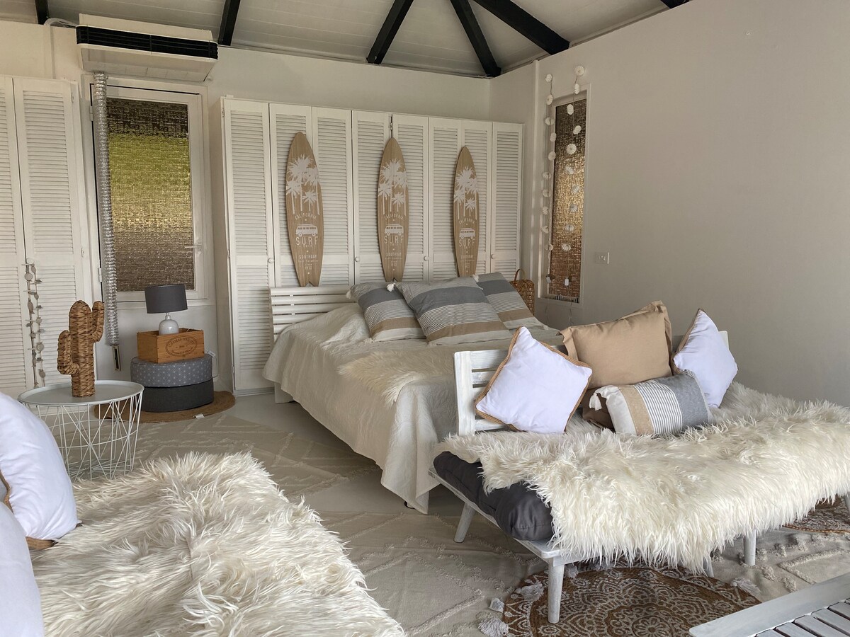 Taharuu sörf çimərliyindən avtomobillə 2 dəqiqəlik məsafədə, Atimaono qolf meydançasından 5 dəqiqəlik məsafədə və ərzaq mağazalarından 2 dəqiqəlik məsafədə yerləşən bu rahat banqaloda qalmağınızdan zövq alın. İdman seansından sonra dincəlmək və ya sadəcə Papeete-nin səs-küyündən uzaqlaşmaq üçün mükəmməl bir yer. Özünüzü evinizdəki kimi hiss etməyiniz üçün hər şey var: örtülü qarajı olan ayrıca giriş, pulsuz Wi-Fi, Netflix, paltaryuyan maşın və tam təchiz olunmuş balaca mətbəx və süfrə ləvazimatları. Giriş saat 15:00 -da başlayır. Çıxış günorta vaxtıdır.