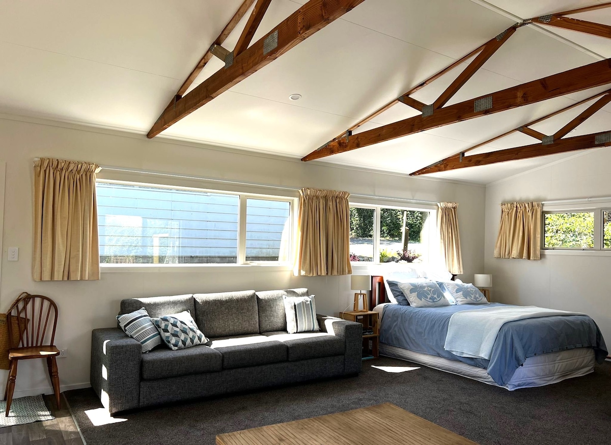 Orijinal, Kivi, Coopers Beach-ə birbaşa çıxışı olan 50 nəfərlik ailə bach. Rumpty, lakin komfortlu və avtomobillər üçün yer və qayıq olan böyük bir ayrıca hissədə oturmaq. Baxça çox özəl və sakitdir. Doubtless Bay boyunca möhtəşəm fasiləsiz mənzərələri var və 2 dəqiqə ərzində ağaclardan keçən xüsusi yol vasitəsilə çimərliyə gedə bilərsiniz. Baçda istilik nasosu, qızdırıcılar və çoxlu ədyallar var ki, gecə rahat qalsın. Rahat tətil üçün mükəmməl yer olduğunu düşünürük.