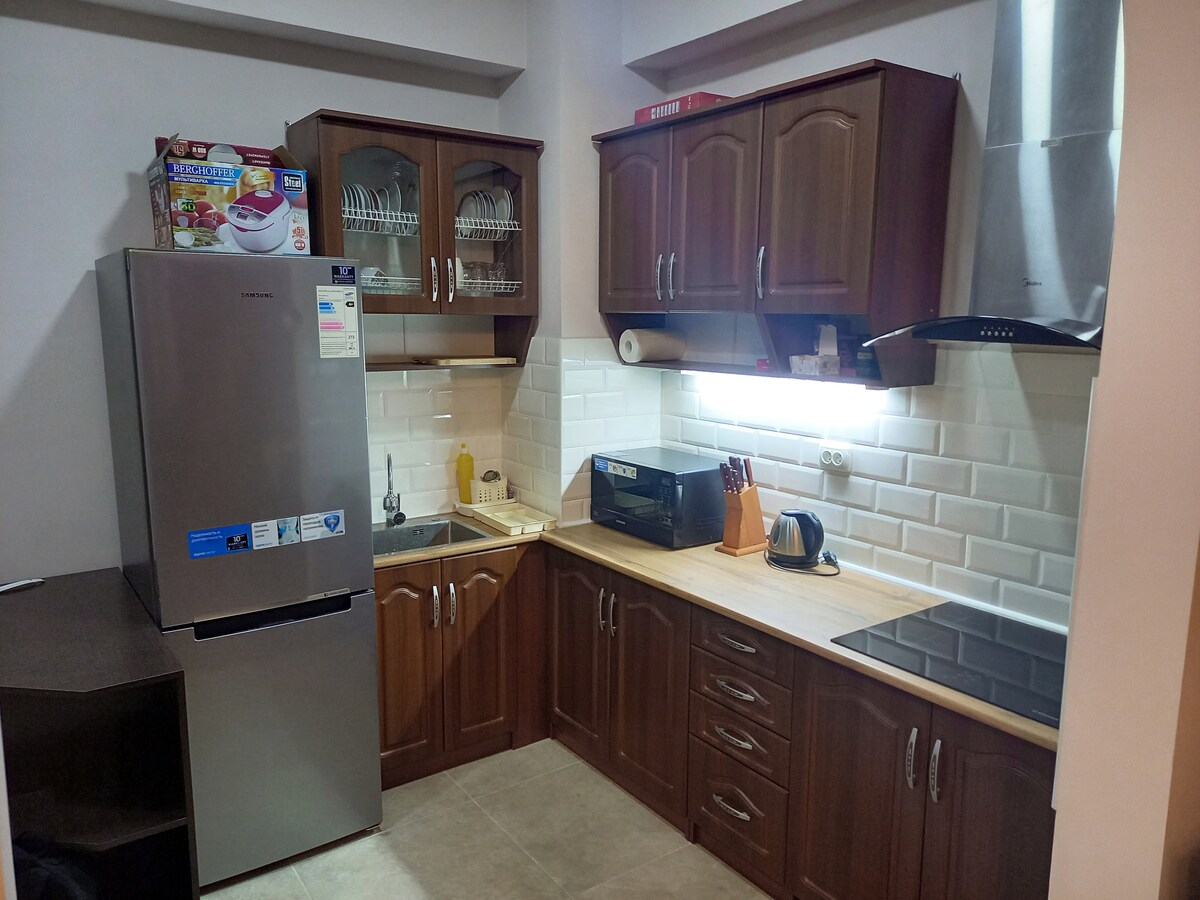 Şəhər mərkəzindən cəmi 1,2 km məsafədə yerləşən rahat mənzilimizə xoş gəlmisiniz! Yaxınlıqda ehtiyacınız olan hər şey var: park, 24/7 supermarket, restoran, aptek və nəqliyyat. Cütlüklər, ailələr və ya tək səyahətçilər üçün mükəmməl sakit, təhlükəsiz məkan. Sürətli Wi-Fi, tam təchiz olunmuş mətbəx, paltaryuyan maşın, təzə döşəkağılar və rahat çarpayılardan zövq alın. Barmaqlarınızın ucundakı hər şeylə özünüzü evinizdəki kimi hiss edəcəksiniz. Yardım etməyə hər zaman hazırıq.