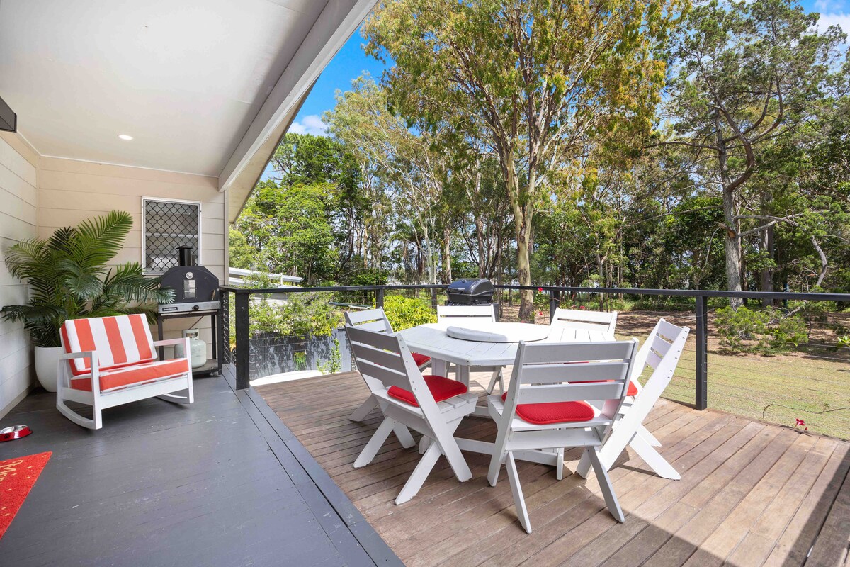 Unwind and relax in this unique, fully self contained tiny home. Set on 5 peaceful acres, this private oasis is ideal for romantic escapes, whale-watching adventures, K’gari trips, or as a base for Lady Elliot Island. 14 minutes to K’gari/Fraser Island ferry and 10 minutes to the Hervey Bay marina restaurants, beaches, and the Urangan Pier. Sit back on the open verandah or cosy up by the bon fire with your favourite beverage and enjoy the stunning Hervey Bay sunsets, wild life and kangaroos.