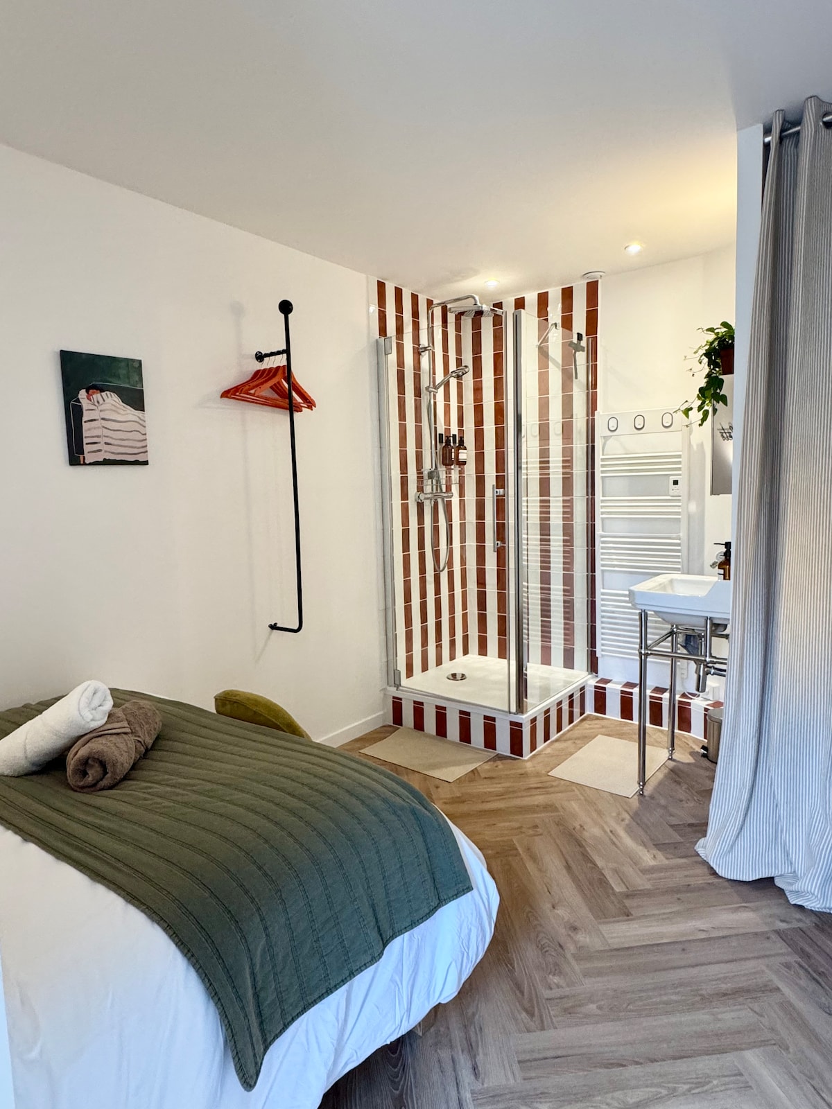 Offrez-vous une pause dans ce studio tout confort situé au rez-de-chaussée de notre maison familiale. Seul le hall d’entrée est partagé : vous bénéficiez ainsi de toute l’intimité nécessaire. A seulement 2 mn à pied de l'arrêt Roustaing (tram B), accédez en toute simplicité au centre historique, aux facultés, à la gare, à l’aéroport ou à la salle Arkea Arena. Commerces et supermarché à proximité. Parking privé sur réservation : 7 €/nuit -- > voir Mon logement Professionnel : Facture dispo