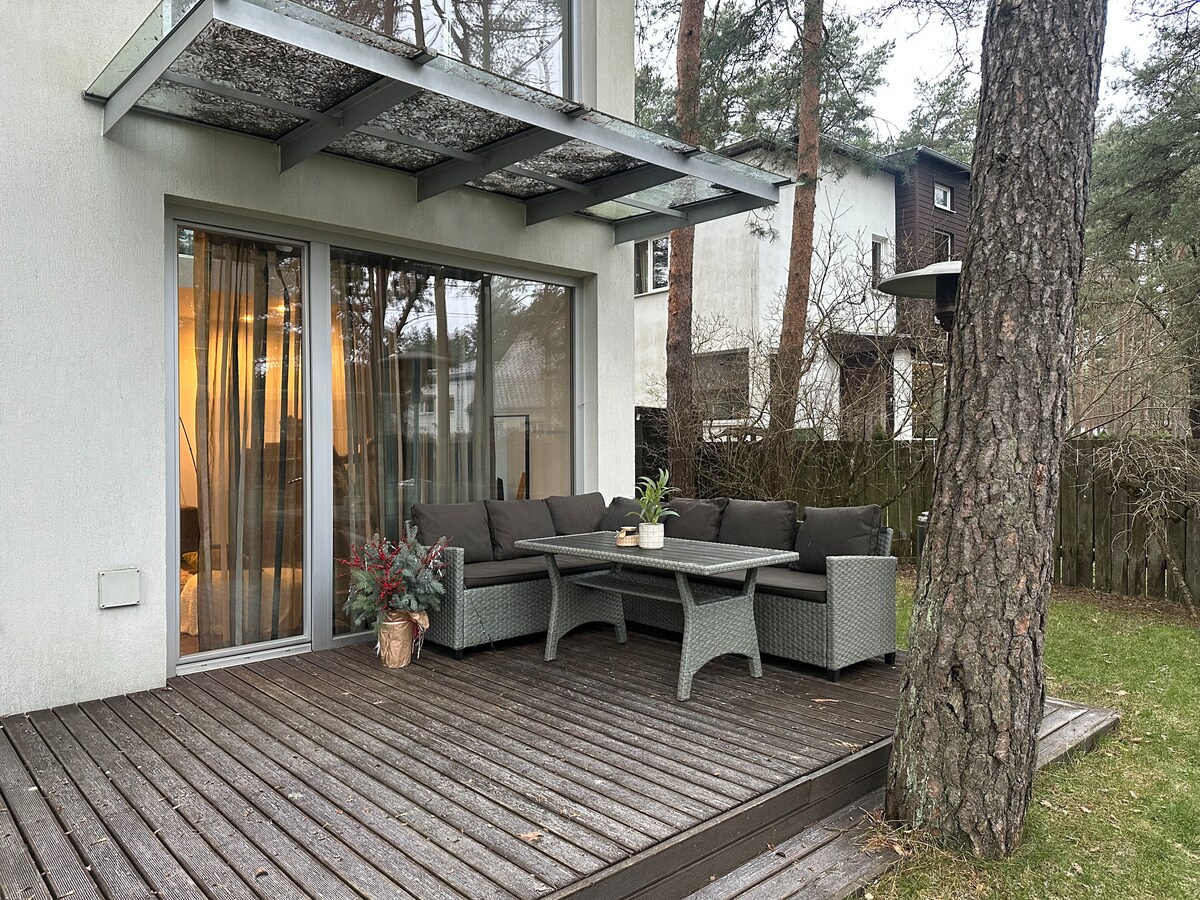 A charming retreat just 15 minutes from the city center, nestled in a peaceful, green neighborhood. Our historic 1939 home offers a cozy bedroom, spacious living room, a fully equipped kitchen, and a shower room with WC — everything you need for a comfortable stay. Just 300 meters from tranquil forest trails, it’s the perfect place to unwind and feel at home. We warmly welcome you to relax, explore, and create beautiful memories here.