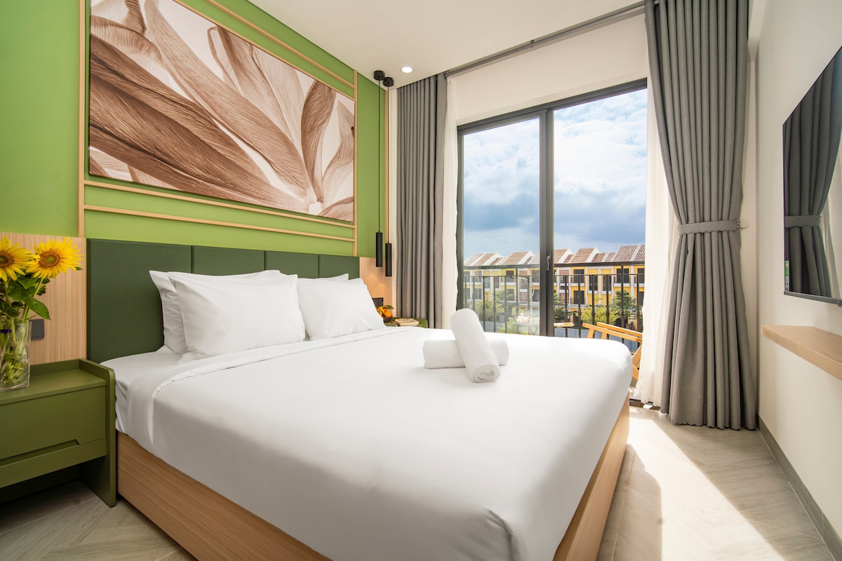 1 Bedroom Apartment in the heart of Nam Hoi An Riverside Village with Park View and small Balcony (26m2) 𝗟𝗼𝗰𝗮𝘁𝗶𝗼𝗻 - Inside Nam Hoi An Riverside Village (see below) - 15 minutes from Hoi An Ancient Town - 40 minutes from Da Nang and Airport 𝗪𝗵𝗮𝘁 𝗶𝘀 𝗶𝗻𝗰𝗹𝘂𝗱𝗲𝗱 - Free Parking - Free Wifi - Safety - Cleaning - Free Pool - Free Bike rental - Access to Nam Hoi An services