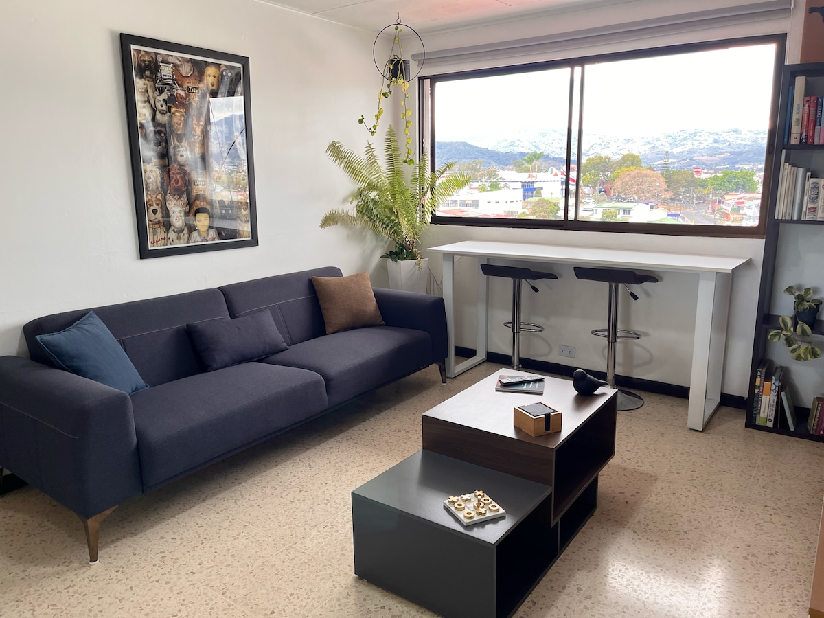 Private apartment with one room, one bathroom, living room, kitchen and laundry area. A hidden gem in the heart of San Jose that welcomes you with a modern and cozy space, plenty of natural light, and an impressive view of the mountains in the southern central valley.