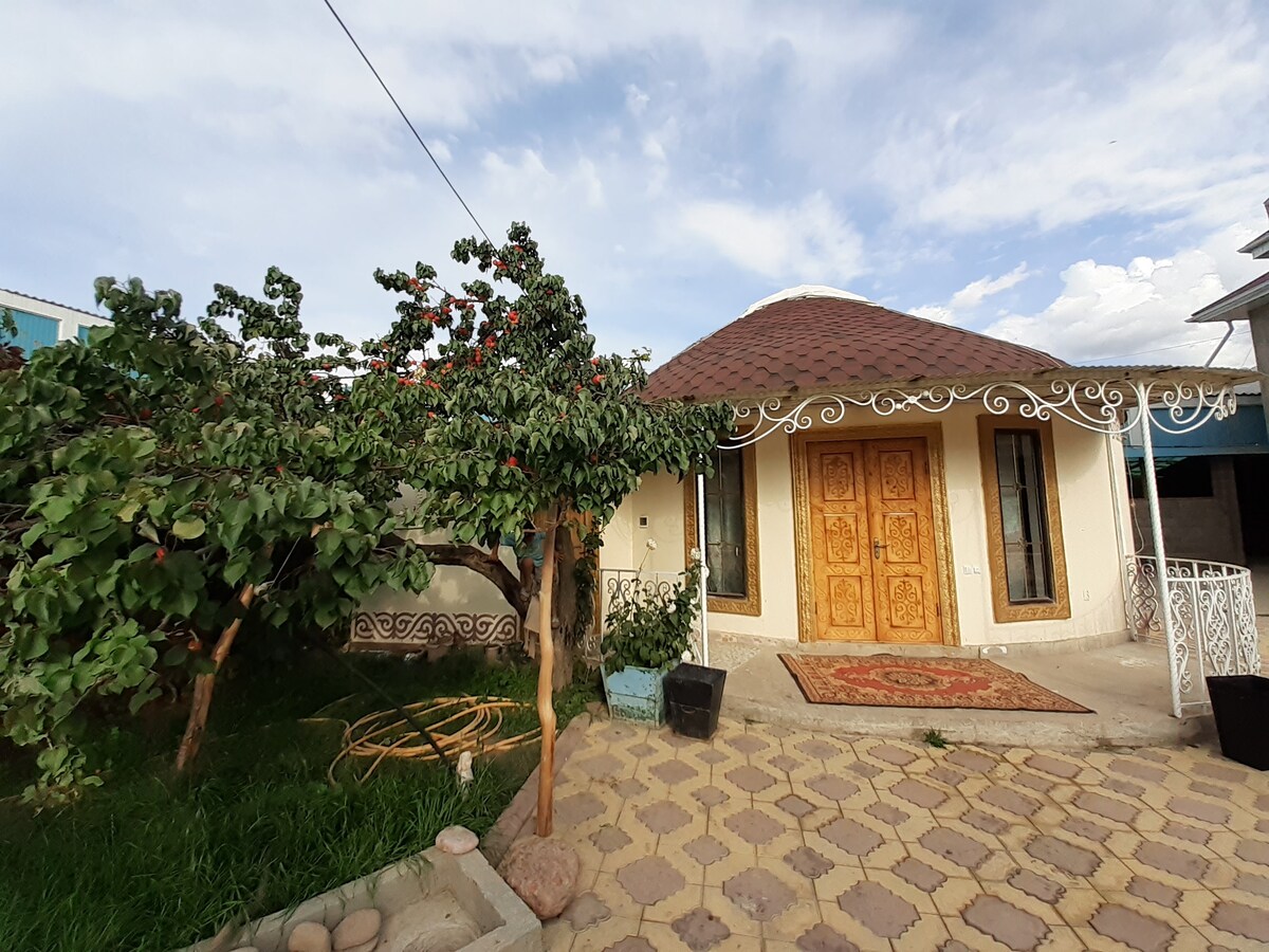 Traditional Kyrgyzstani Yurt, positioned on Gealogia mountain in Barskoon. Plenty of walking trails and hikes accessed from within the property. Yurt is spacious with one queen sized bed and two singles with its own toilet. Mountain views surround the property, and is also walking distance from all the main amenities in town. Traditional Kyrgyzstani cooking are part of the experience and available for breakfast, lunch and dinner. Taxis are regularly available for access to the tourist sights.