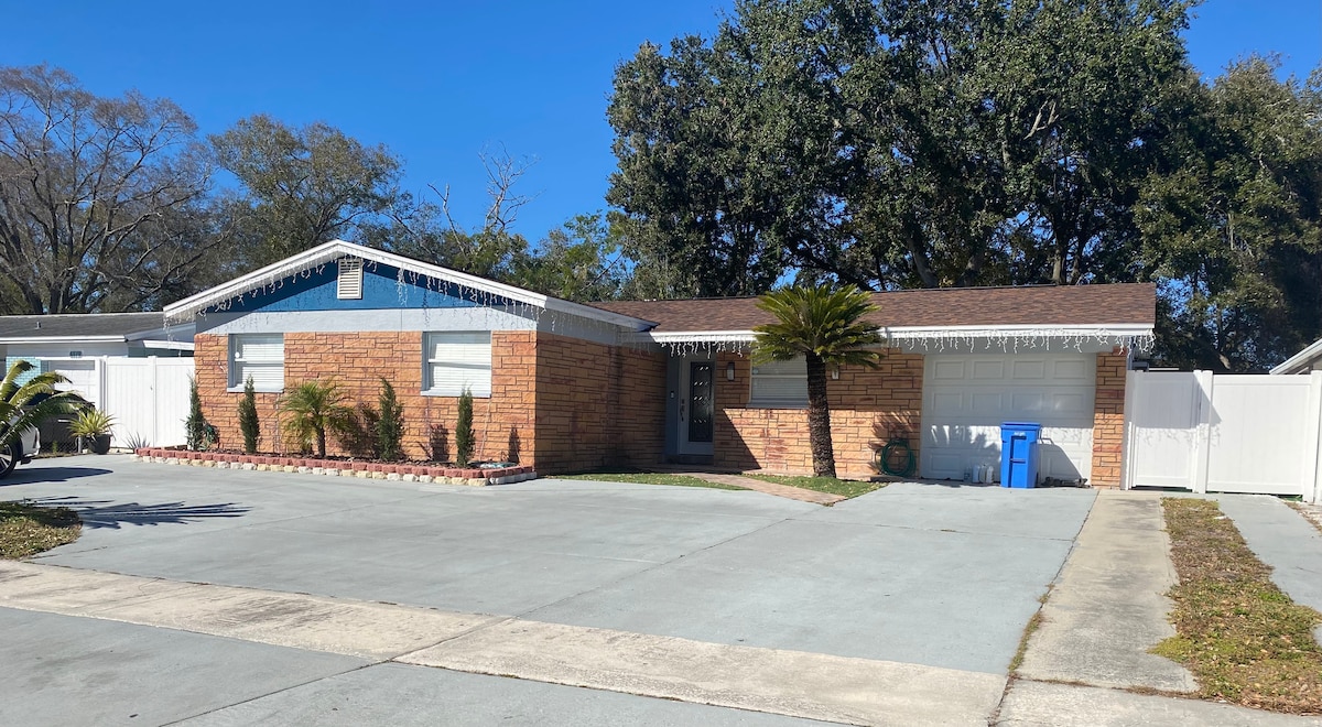 Bu sakit 2 yataq otaqlı, 2 hamam otaqlı, 2 ədəd 150-179 sm-lik çarpayılı evdə dincəlin. Müasir rahatlıqlar, ayrıca veranda, tam təchiz olunmuş mətbəx, qaraj girişi (əlavə ödənişlə) və xüsusi parkinqi olan ev. İstirahət, ailə ziyarəti və ya Tampanı araşdırmaq üçün idealdır. Mərkəzi kondisioner, yüksək sürətli Wi-Fi, striminq və uzunmüddətli qonaqlamalar üçün camaşırxana daxildir. Şənlik və ya ev heyvanı yoxdur.