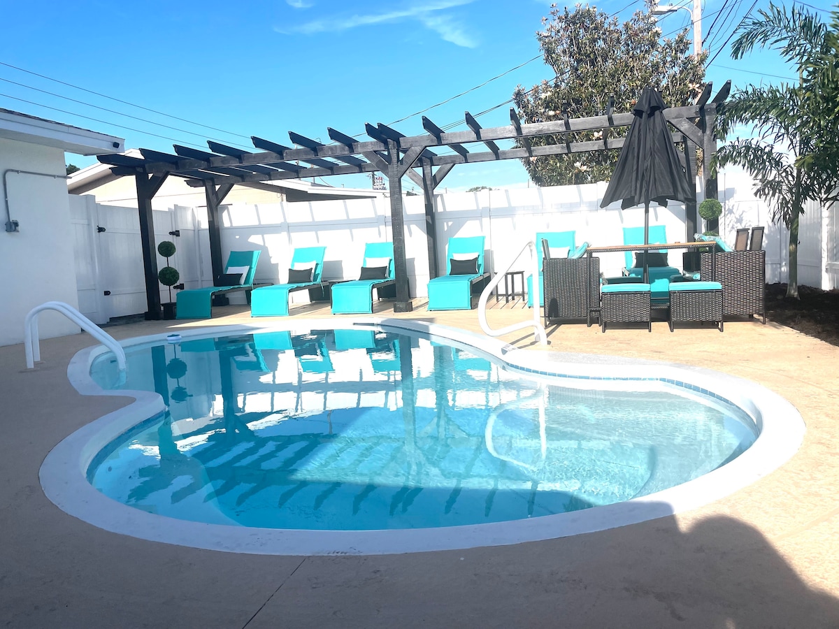 Welcome to Seminole Shores Villa, your 2,400-sf tropical spa oasis! This property is a 4BR home with tons of amenities to make your stay truly memorable. While the beaches are close (<5 min), you might never want to leave the heated salt-water pool nestled into a huge spa-like backyard, which offers plenty of privacy and activities. This house was completely renovated in 2023 to incorporate a tropical design. We prioritized a clean and safe environment as part of your experience.