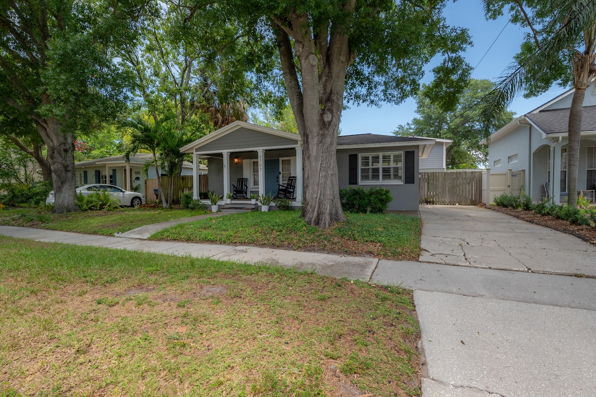 This charming 4 bed- 3 bath bungalow in south tampa has a private screened in pool (with option to heat) and private two person electric infrared sauna attached to a main house and guest house allowing plenty of room for all guests. The convenient location of this property is about 10 minutes to all major attractions including Raymond James Stadium, Downtown Tampa, Water Street, Amalie Arena, The Convention Center and Ybor City.