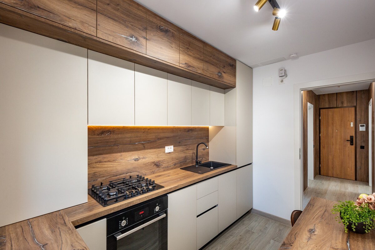 A uniquely and carefully designed, this apartment perfectly combines coziness with stunning Scandinavian accents. Situated in a new residential neighborhood, we go above and beyond to ensure a unique experience for our guests. Our home can accommodate up to 4 people and has its parking lot. The standout feature of this penthouse is the spacious terrace with a jacuzzi and a panoramic view over the mountains, being ideal for couples, business travelers, solo adventurers, or families (with kids).