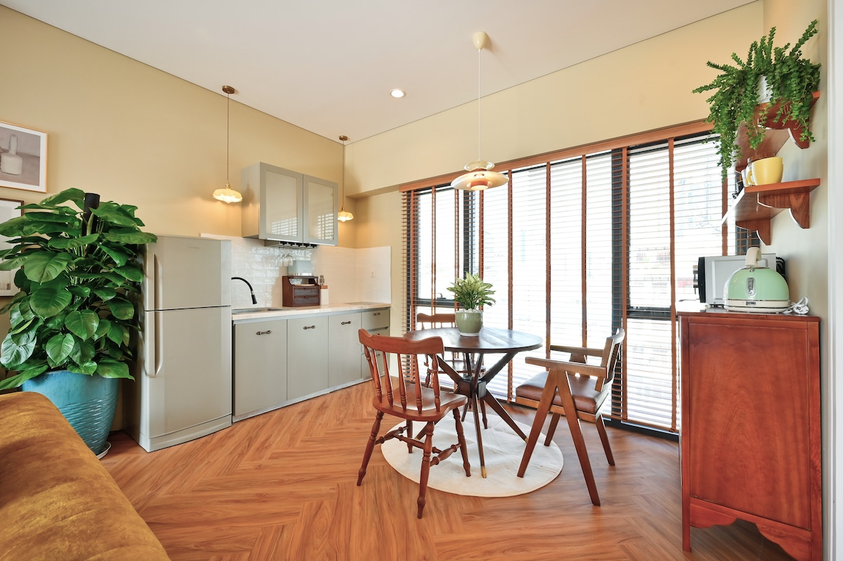 Bu 3 yataq otaqlı retro mənzildə isti tonlar, yumşaq işıq və dərhal rahatlamağa kömək edən sakit atmosfer bir araya gəlir. Böyük pəncərələrdən şəhərin silueti və yaşıllıqların sakit mənzərəsi görünür, gün boyu ev təbii işıqla dolu olur. Açıq qonaq otağı və yemək sahəsi yavaş səhərlər və ya rahat şam yeməkləri üçün mükəmməldir, əsas yataq otağında isə sakit istirahət anları üçün erqonomik masa və vannadır. Hər bir detal sizi sakitləşdirmək və Sayqonun gözəlliyi ilə əlaqələndirmək üçün nəzərdə tutulub.