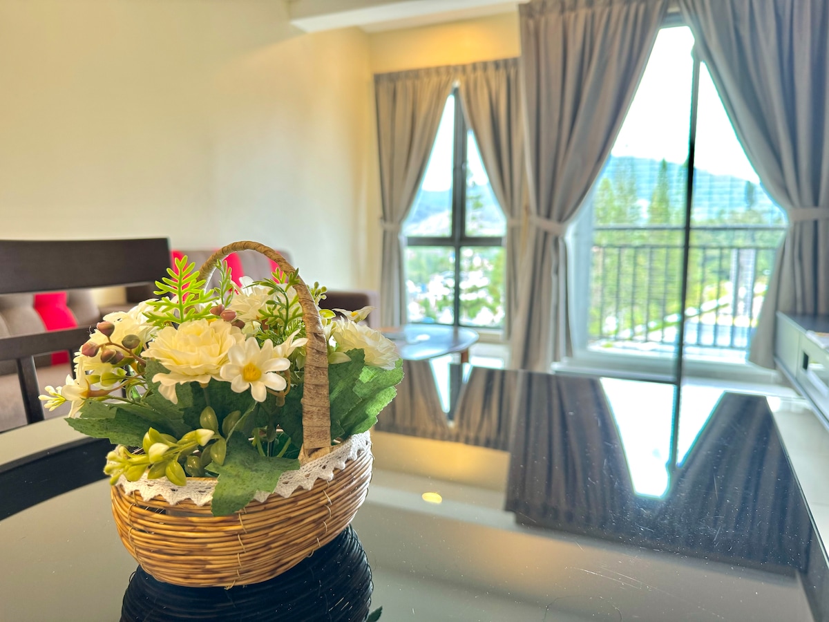 Mövqe: Greenhill Resort, Tanah Rata, Cameron Highlands, Malayziya ▶️Aşağı Yer döşəməsi ~ 20 addım (Yalnız pilləkənlərlə əlçatandır) Bu füsunkar və geniş mənzil ailələr və qruplar üçün idealdır, komfort və təbii gözəlliyin mükəmməl qarışığını təmin edir. Qonaqlama yeri: -3 zərif mebelli yataq otağı -2 müasir hamam otağı - Tutum: 6 nəfərə qədər qonaq yerləşdirir -PLEASE ; yalnız 6 nəfər. Əlavə şəxslərin əlavə xərcləri olacaq.