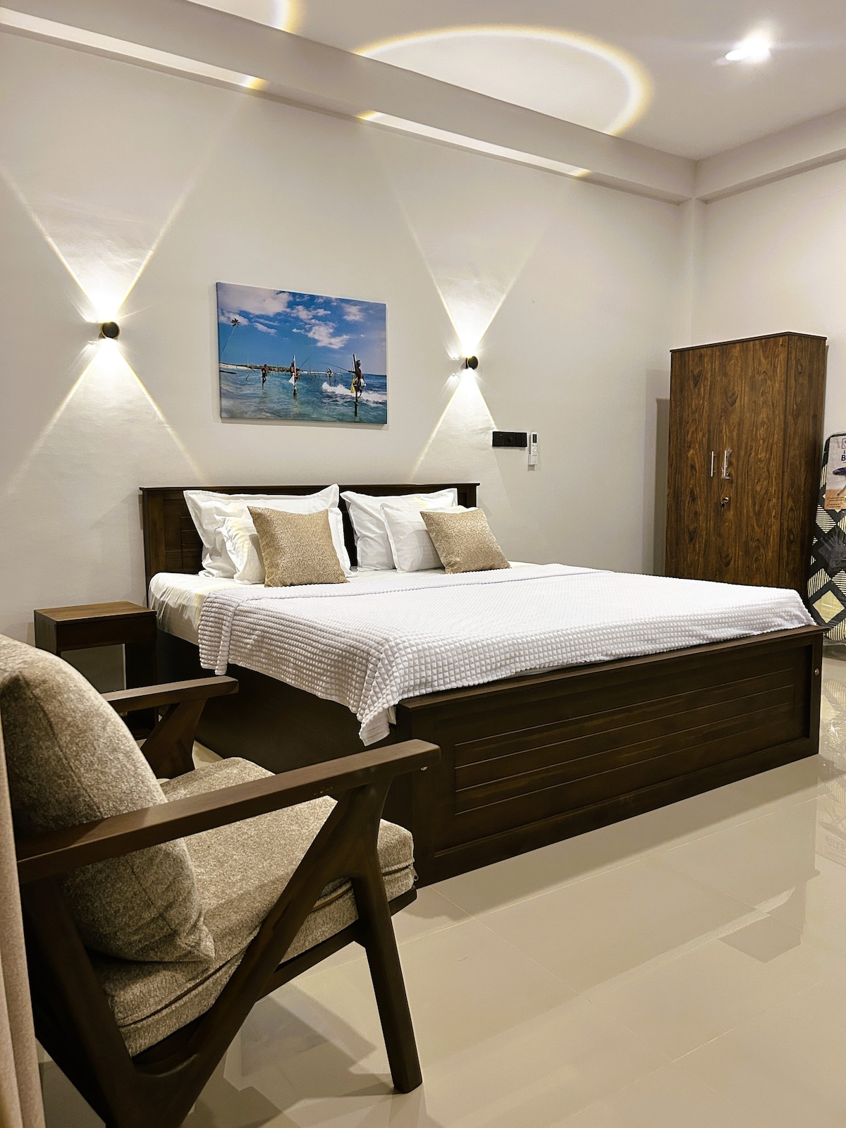 Experience comfort at Astro Villa’s first-floor suite, featuring an A/C bedroom, private kitchen, and bathroom. Relax on the balcony and soak in the tropical vibes, just a short distance from Weligama’s hotspots like Marriot, W15, and Kurumba Bay. Perfect for couples or solo travelers, this stylish space offers free Wi-Fi, parking, and a cozy ambiance. Whether you’re here for surfing, dining, or simply unwinding, this private getaway ensures a hassle-free and memorable stay.