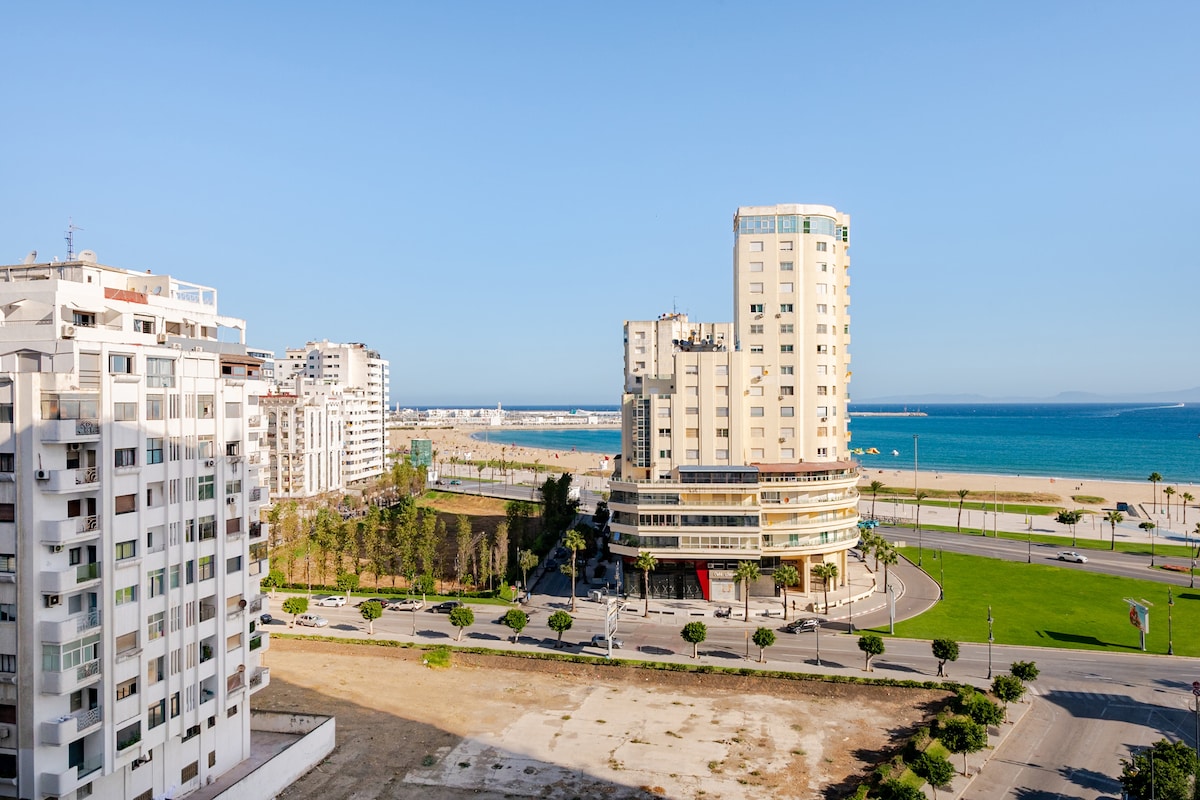mərkəzi (Mohamed 5 Bulvarının yanında) , dəbli və dizaynlı , bütün imkanlara yaxın ən yaxşı ərazi. 24 saat təhlükəsizliyi olan fərdi yaşayış yerində 2 yataq otağı, yemək otağı olan böyük qonaq otağı, mətbəx, 1 duş otağı, gözdən yayınmayan möhtəşəm mənzərəli BÖYÜK terras,lift, yaxşı təchiz edilmiş və qonaqlamanızı xoş etmək üçün bütün rahatlıqlarla təchiz edilmiş. Tangier Marinadan 2 dəqiqəlik, hava limanından 20 dəqiqəlik və Tgv qatar stansiyasından 2 dəqiqəlik məsafədə -pickup hava limanı qeyri-məcburi